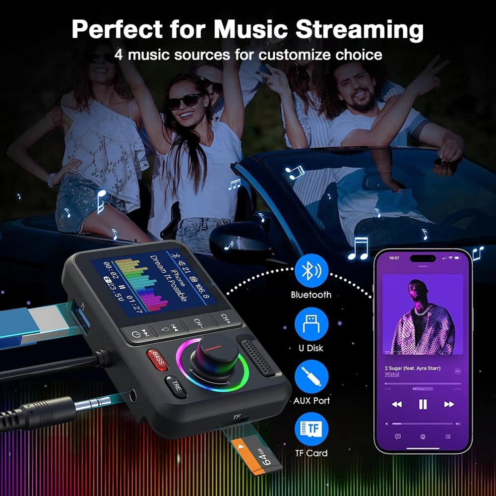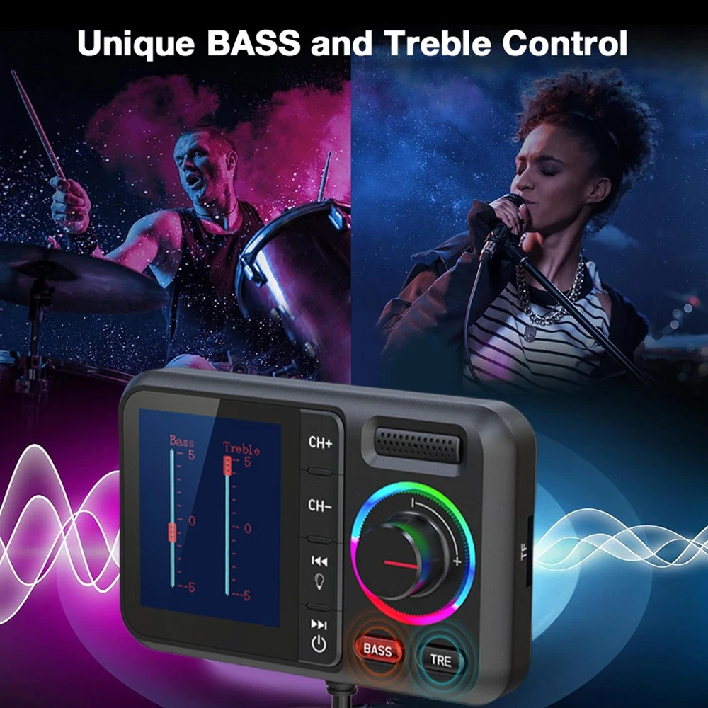 Product Description Description: Colorful LCD Screen: This Bluetooth adapter is equipped with large LCD screen, providing more information than other products. Display details include Bluetooth name, FM channels, connected device name, car voltage, music title, music count, volume, incoming phone numbers and play status. The 360° flexible design ensures a comfortable visual experience and easy access for hands-free calling. Hands-Free Calling & Bluetooth 5.0: With the latest CVC noise cancellation and Digital Signal Processor (DSP) technologies, the built-in microphone picks up your voice from all directions. The Bluetooth 5.0 chip ensures a faster and more stable connection, making it easier to stream music and make hands-free calls. It also reconnects automatically to the last paired device for convenience. Dual USB Ports & QC3.0 Fast Charging: The bluetooth FM transmitter features dual USB ports (QC3.0+2.4A), allowing you to charge two devices simultaneously with QC3.0 technology for fast charging—up to 4x faster than standard chargers. It also includes TF card and AUX ports, giving you multiple ways to play music via USB drive, TF card, AUX or Bluetooth. Note: TF card not included. Activate Siri & Hands-Free Use: Easily stay focused on the road by activating Siri or Google Assistant for hands-free calling, messaging and navigation. The large button allows you to answer, redial, hang up or reject calls with a simple press. It also supports voice notifications from navigation apps, making it even easier to stay safe and connected while driving. Enhanced Treble & Bass Control: Experience Hi-Fi sound with the FM transmitter, featuring independent treble and bass control for a personalized audio experience. Adjust the sound to your preference and enjoy audiophile-grade quality with an auto-syncing colorful music spectrum that creates the perfect party atmosphere. Specifications: Name: Car Bluetooth Player Material: ABS Color: Black Size: 82×52mm/3.22×2.04inch Bluetooth Version: 5.0 Bluetooth Distance: >7M FM Transmission Frequency: 87.5-108.0MHz FM Transmission Distance: <3M Package Includeds: 1×Bluetooth Adapter 1×3.5mm Audio Cable 1×User Manual Note: 1. Please allow 0~1 inch error due to manual measurement. Thanks for your understanding. 2. Monitors are not calibrated same, item color displayed in photos may be showing slightly different from the real object. Please take the real one as standard. Payment Shipping Returns Contact Us 1. This is the payment method we can accept: Paypal 2. You can checkout and pay immediately after the auction ends or you complete the purchases. If you need an eBay invoice sent to you by Email, please contact us before making payments. 3.Once the checkout is completed, you will not be able to include any additional purchases. We start to process and fulfill your order once payment is received. New purchases after the checkout will be processed separately. 4. Payments are expected within 4 days after the order is confirmed. Unpaid item (UPI) strike may be filed with eBay upon non-receipt of payment. 1. How much is the shipping & handling (S&H)? Our shipping and handling charges are clearly stated in the Shipping and Payments section of the item page, and we provide Free Shipping for most items. 2. For multiple purchases, the combine shipping discount will be automatically calculated when you check out and pay all of your purchases together. Items checked out separately may not be combined and the combine shipping discount will not be offered automatically. 3. Please make sure the correct Ship-To address is entered before checking out. Once the payment is completed, you may not be able to change the shipping address. We shall not be held responsible for any wrong or undeliverable addresses. 4. We usually ship within 1-2 business days of receiving cleared payment. 1. We put buyer's satisfaction at top priority. If you're not pleased with your purchases, we'll be happy to make an exchange or refund the item total price less Shipping and Handling (S&H) charges within 30 days of your purchases. 2. For any Exchange, Refund or Return, the item must be in its original condition, including the box, packaging, and all the accessories or gifts. 3. We'll provide prepaid return shipping label if the return is a result of our error. Postage reimbursement is offered only on standard mails, and it needs to be approved by our staff prior to returning. 4. Please allow up to 7 business days for returns to be processed. 5. Shipping and Handling (S&H) charges are not refundable. 1. Customer satisfaction is very important to us and our feedback rating reflects this satisfaction. If you have any question or concern, please contact us via eBay message. 2. We respond to all eBay messages as quickly as possible. Though your question will usually be answered very soon, please allow us up to one business day before you start thinking your message is neglected or the reply is avoided, because there would be time difference, non-working hours or public holidays that have prevented us from making an instant response. Payment 1. This is the payment method we can accept: Paypal 2. You can checkout and pay immediately after the auction ends or you complete the purchases. If you need an eBay invoice sent to you by Email, please contact us before making payments. 3.Once the checkout is completed, you will not be able to include any additional purchases. We start to process and fulfill your order once payment is received. New purchases after the checkout will be processed separately. 4. Payments are expected within 4 days after the order is confirmed. Unpaid item (UPI) strike may be filed with eBay upon non-receipt of payment. Shipping 1. How much is the shipping & handling (S&H)? Our shipping and handling charges are clearly stated in the Shipping and Payments section of the item page, and we provide Free Shipping for most items. 2. For multiple purchases, the combine shipping discount