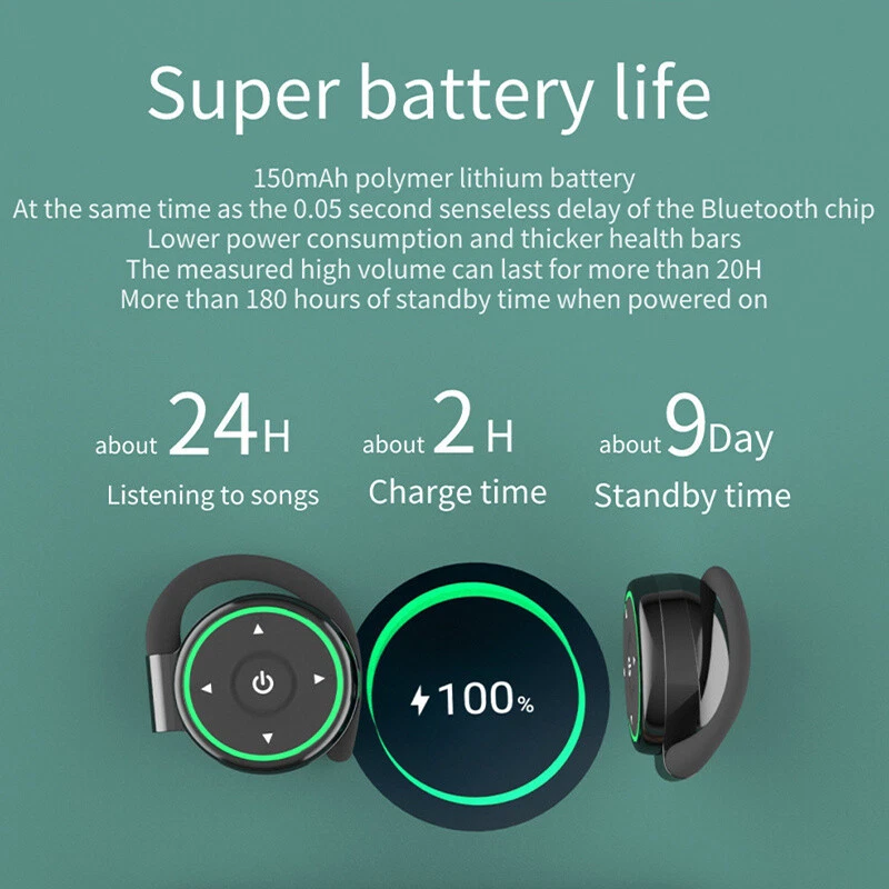 Product Description If you have any questions, please contact customer service first, do not open disputes easily, thank you! Features: 1.Open type does not enter the ear, will not hurt the eardrum. 2.TPU soft material ear hanging, long wearing will not have pain. 3.30MM large internal magnetic speaker, good sound quality and big sound. 4. Equipped with the latest Blue-tooth 5.0 + EDR low latency (0.05s) chip. 5.Maximum volume continuous playback over 13 hours; normal use about 28 hours. 6.The surface is made of silicone soft material, comfortable and textured. 7.RGB gradient breathing light, show personality at the same time, night travel can also play a reminder. 8.Walking, riding, driving, sports, while enjoying the music, but also does not affect the reception of external sound, more secure. Specification: Weight: 18g Blue-tooth version: 5.0+EDR Speaker impedance: 320mega Microphone sensitivity: -42dB Input parameters: DC 5V Transmission distance: barrier-free 10-15 meters Transmission power: 2.4-2.48GHZ Talking time: about 24 hours Playback time: about 20 hours Standby time: about 180 hours Battery capacity: 150mAh lithium battery *2 Operating temperature: -10-55 degrees Power supply interface: TYPE-C Blue-tooth protocol: Headset/Handsfree/A3DP/AVRCP Package Includes: 2*Headset 1*Charging cable 1*Manual Note: 1. Please allow 1-3 mm error due to manual measurement. Please make sure you don't mind before ordering. 2. Please allow 1-3g weight error. Please make sure you don't mind before ordering. 3. Due to the lighting of the photos and the difference of monitors, the pictures may not reflect the actual color of the real item. Please make sure you don't mind before ordering, thank you! About Us We accept all payments authorized by eBay. powered by