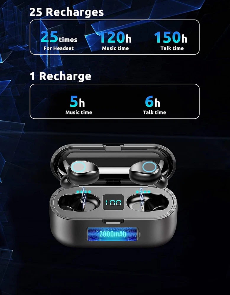 【SPECIFICALLY DESIGNED WITH POWERBANK】: This is specifically Compatible with Samsung Galaxy S24/Ultra/S23/S23+/S23 Ultra /S22/Ultra/S22+/S21/Ultra/S21+/S20/5G /Galaxy A/Note/Z Flip & Fold Built in 2000mah Charging base for this earphone and mobile phone. Second: Operational function upgrade: One touch switch previous/next song & volume adjustment & wake up. 【COOL LED SCREEN】: Bright Bluetooth LED display will clearly show the accurate power level of the charging box and the earphone, this way you can better arrange the future management of the headset, and will not worry about the earplugs without power/electricity. 【CHIP WIRELESS UPGRADE】: Upgraded using the NEWEST digital optimized 5.3 Authentic Certified Bluetooth Chip, Pick up the automatic boot and matching. CVC 8.0 intelligent noise redution,Enjoy HD call effects without being affected by noisy environment. 【IPX7 WATERPROOF AND 8D BASS】: Daily life waterproof, support rainy outdoor sports, gym sweating, let you enjoy music in sports.Enjoy the HIFI scene and enjoy the immersive 8D stereo surround sound effect 【WHAT YOU GET】: You will get a 2,000Mah Enabled PowerBank with up to 24h of Life for your Portable Bluetooth Volt Plus Tech Version F9 TWS earphone with a Power Pack Storage Gift box, and the charging bank headset can charge for over 24 hours of use. Product Description 1 CVC Noise Reduction 2 Earfix Secure-Fit 3 Crystal Clear Sound 4 Hi-Fi Audio Experience 5 Fast Bluetooth Connection The video showcases the product in use. The video guides you through product setup. The video compares multiple products. The video shows the product being unpacked. 1 IPX7 Water Resistance 2 Bright LED Display 3 Long Lasting Battery 4 What's in the Box