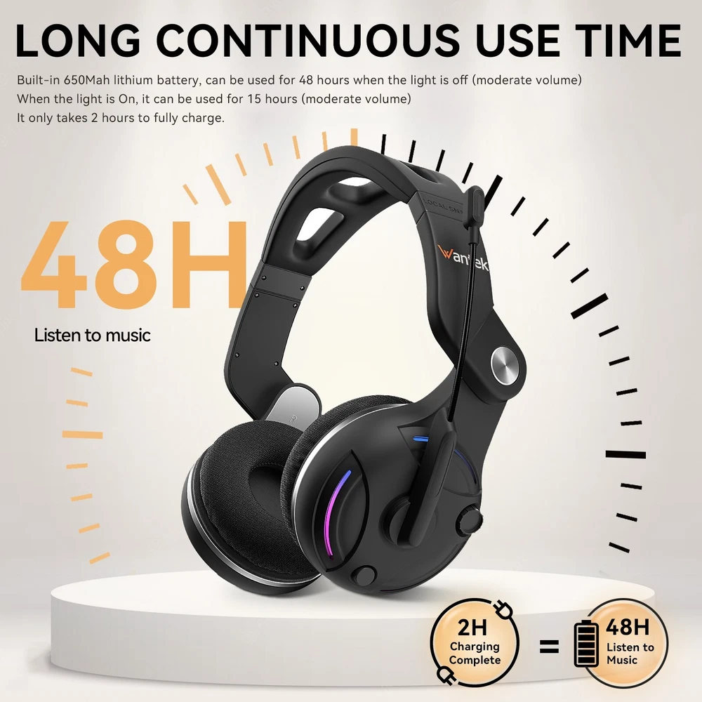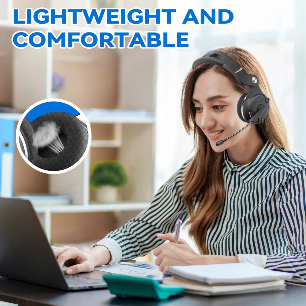 ✅【AI NOISE CANCELLATION】Wantek Wireless headset grant you unfettered freedom from disruptive noise, thanks to premium environment noise canceling microphone. Keep you sounding sharp and super slick on calls and virtual meetings, no matter where you are. Even when the kids are home, the subway's crowded, or the call center office is a little busy, they'll hear you, and not your surroundings. Unfold a more flexible way to work, with Wantek wireless headset with microphone for PC ✅【DUAL-CONNECTIONS】Connect to two devices simultaneously with Bluetooth 5.2 and instantly switch between them. Whether you're working on your laptop, or need to take a phone call, audio from your Bluetooth headphones will automatically play from the device you need to hear from ✅【48H LONG BATTERY LIFE】Designed to provide you with uninterrupted communication for extended periods. This wireless headset with microphone for PC delivers 48 hours of work time or up to 40 hours of talk time — all on one charge. Even with just one weekly charge, the bluetooth headset ensures you have a full 8 hours of talk time each day for your work shift. Say goodbye to the hassle of frequently charging your wireless headset for computer and enjoy the freedom to stay connected for longer ✅【Hi-Fi STEREO SOUND & NO DELAYS】The Wireless Headset features advanced lossless audio transmission technology, delivering crystal-clear with no delays. With binaural headsets, you can enjoy clearer conversations than with single-ear headsets. High-fidelity audio can also accurate reproduction of every detail in music and movies. Whether you're working or relaxing, this Bluetooth headset with microphone is the ideal choice for anyone who demands superior audio performance ✅【EXTREME COMFORT & EASILY MUTE】Wireless headset for work features an ergonomically adjustable headband filled. Specifically designed to reduce stress, our headbands and earcups contain ultra-soft memory foam for gentle cushioning. Meanwhile, the flexible earcups rotate to move whenever you do, and provide enough space for your glasses. Additionally, the mute button on the side of the earcup allows for easy silencing during voice chats or meetings, ensuring you only speak when ready to be heard DOUBLE CAVITY STRUCTURE The shell made of aluminum alloy is used as a layer,Provides a rigid structure that reduces noise FOLDABLE DESIGN You can easily pack this in your bag, backpack or suitcase. headphones wireless saves you storage space COMFORTABLE AND DURABLE Adjustable, padded headband ensure premium comfort even during long listening sessions Notes:Wantek T2L Wired & Wireless Bluetooth Headphones Over Ear In general, Bluetooth headphones should not exceed a volume of 100dB. To protect your hearing, the maximum volume of the Bluetooth headphones has been set to 95dB. Please protect your hearing by not listening to very loud music for too long Battery performance depends on the volume of the headphones For optimal noise isolation performance, the ear pads should sit directly over the ears and not slip out of place For the best sound quality and strongest noise isolation, please ensure that the right and left headphones are seated on the correct side respectively To avoid skin irritation, please clean and disinfect the headphones regularly and do not use lotions or skin care products when wearing the headphones. Do not wear the headphones over scars or skin irritations. The headphones should fit easily and comfortably, please do not fasten them too tightly. If wearing the headphones causes irritation or abnormalities, please stop using the device Included in delivery Included in delivery Wantek T2L Bluetooth Headphones One USB-C charging cable;One 3.5mm AUX cable One user manual