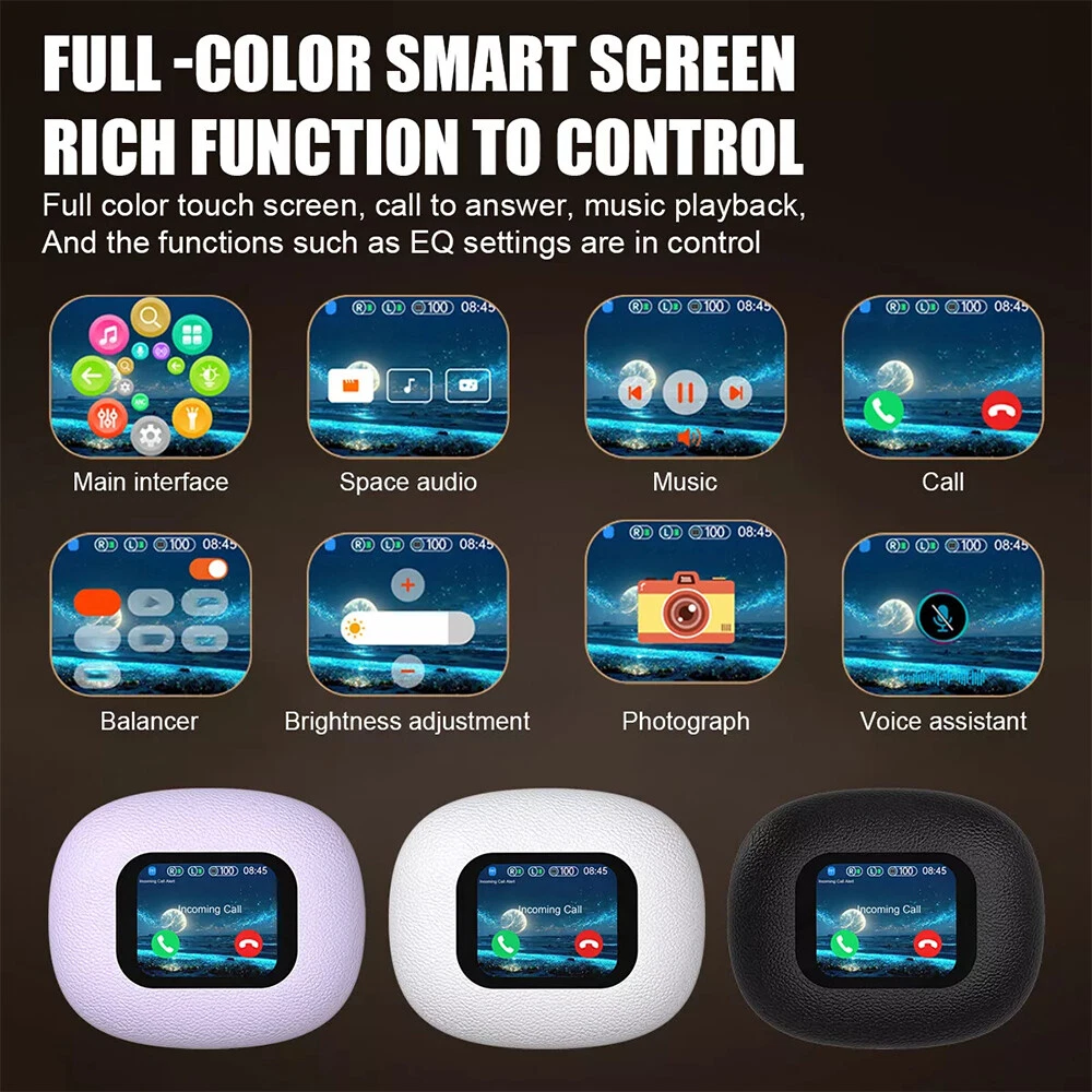 Picture Gallery Description Features: π High quality sound quality, HIFI level. π Comfortable to wear, firm and not falling off, cloud like and skin friendly. π Multi language switching, supporting 20 international mainstream languages. π The screen supports control, synchronization of device time, and operation functions. π The latest design scheme is 5.4 Bluetooth version, with efficient quality assurance. π The charging compartment adopts genuine leather and electroplating technology, which is at the forefront of the latest trend. π LCD screen design and full screen operation effectively enhance the product operation experience. π Large capacity charging case, the earphones can be used for more than 8 hours on a single charge, with long battery life. Specifications: β Product Name: Wireless Earphones β Headphone type: Open type β Chip model: 7003D8+AI β Supporting protocols: HFP/A2DP/HSP/AVRCP β ANC noise reduction: 37 decibels β Speaker specifications: Ξ¦F12mm β Screen size: 2.01 inches β Screen material: LED β Operation mode: Full touch control β Bluetooth version: 5.4 β Transmission distance: β₯ 10 meters (accessible) β Talk time: 8 hours β With charging case: 48 hours β Input voltage: DC5V1A β Charging port: Type-c β Charging time: 2 hours β Battery capacity: 80mAh (earphones) β Battery capacity: 600mAh (charging case) β Product color: Black/White/Skin/Purple (optional) β Product Material: ABS+PC Package List: 2 * Bluetooth earphones (left and right ears) 1 * Type-C cable 1 * User Manual 1 * Charging case Be careful: 1.Due to manual measurement, please allow for a 1cm error! 2. Due to different display resolutions, please consider slight color differences! Shipping Policy Payment Policy Return Policy Shipping Policy 1. We only ship to confirmed PayPal addresses. 2. Economy Shipping, with no tracking number. Standard Shipping, with tracking number. Express (Expedited) Shipping, with tracking number. 3. Economy shipping needs 2-5 weeks to arrive mostly. In rare case, it can take up to 6-8 weeks. It depends on your location and local postal service, as well as the weather condition along the shipping. 4. If you need a faster delivery time, you could choose Express (Expedited) Shipping. If you need a tracking number, you could choose Standard Shipping. Payment Policy We accept PayPal only. We only ship item to your PayPal verified address. Please pay attention that import duties, taxes and charges are not included in the item price or shipping charges. These charges are the buyer's responsibility. Please check with your country's customs office to determine what these additional costs will be prior to bidding/buying. Return Policy 1. We offer 60 day money back or replacement guarantee. In addition, it allows customers to return new and unused products in their original factory condition for any reason within 60 days from the date of purchase. 2. Although we test each item and they are packed professionally, few item (less than 0.1%) might be damaged during the shipping. Please feel free to contact us within 4 days after you receive your package about replacement. 3. If you don't receive items over 35 days, please make sure to contact us before leaving any neutral or negative feedback. We'll try our best to help you solve the problem. If we authorized the return, customers will get an email with instructions for returning the item. Email will be replied within 24 hours on Chinese business hours. On Dec 29, 2024 at 18:52:21 PST, seller added the following information:
