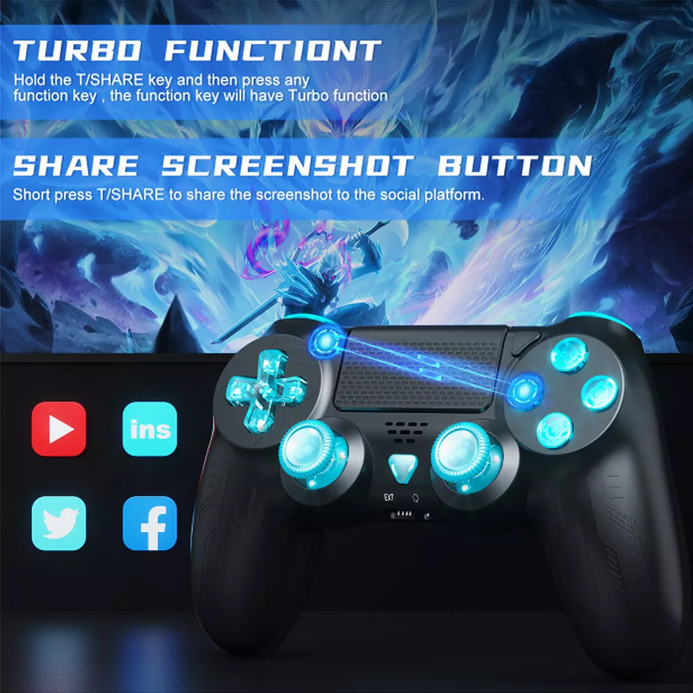 SAFE & SECURE SHOPPING 100% SATISFACTION GUARANTEED FAST SHIPPING Store Categories Store Categories Other Xbox one Controller Nintendo Switch Controller Wii Controller Xbox 360 Controller PS Controller Bluetooth Controller For PlayStation 4 DualShock PS4 Wireless Gamepad Console US Product Description 【Compatibility devices】 Wireless controller for PS-4 compatible with P-S4/Android/iOS/PC Windows 7/8/8.1/10/Phone, with the latest Bluetooth 4.2 tech, controller offers a stable connection, the maximum connection between the Controller and P4 reach 10m (33ft) (Note: You have to activate device with the USB cable in the packaging for the first connection) 【Feature】 Vibration: Dual vibration Motion Sensor: 6-axis motion sensor(3-axis gyroscope, 3-axis accelerometer) Touch Pad: Clickable multi-touch pad Headset Jack: 3.5 mm stereo audio jack Speaker: Stereo speakers TURBO Function:Yes LED Light Bar: Yes Share Button: Yes Ergonomics: Yes Material: Premium ABS plastic Rechargeable Battery: 700 mAh Charging Time: 2 .5 hours Working Time: 12-15 hours Charging Methods: Charging dock and USB cable Stronger Bluetooth Connection: Bluetooth 4.2 with stable wireless connection with no delays, lags, or interruptions. Share and Turbo: 1.The handle supports Turbo function, press and hold the T/SHARE key, and then press the function key, then the function key has Turbo burst function, SHARE key and Turbo key are the same key, press it to enable Share; 2. The keys that support Turbo function are: ╳,○,□,△,L1,L2,L3, R1,R2,R3 etc. Built-in speaker and 3.5 mm earphone jack: so you can plug your headset to completely immerse yourself in a gaming world. Two charging modes: can be charged via USB or dedicated charging cradle Ergonomic grip : Conform to palm structure even if you use it for a long time , you won't feel tired. Refined Joystick: The excellent dual analog joystick design,No dead zone and drift . 【Package Contains】 1x PS-4 Wireless Controller 1x Type-C charge cable 1x Product Manual Payment Shipping Returns Contact Us Payment We accpet payment via PayPal only . Import duties,taxes and charge are not included in the item's price or shipping cost.These charges are the buyer's responsibility. Please check with your country's customs office to determine what these additional costs will be prior to bidding or buying. Insurance is included in the Shipping & Handling costs paid. Shipping Items are generally shipped out in 1-3 business day after your payment has been cleared (Sat. & Sun. excluded.) Orders from the United States Warehouse will be shipped out via USPS or UPS. The shipment usually takes 3-7 business days(Saturday and Sunday excluded), if you need the item urgently, please contact us for detail before purchasing. Local pick up is not available. We do not ship to APO, FPO, Alaska, Hawaii and Puerto Rico addresses, and we are unable to ship to PO BOX for this item. Please provide your psychical address. Returns You have 60 days to return it from the date it was received. All returned items must be in the original package and you must provide us with the shipping tracking number,specific reason for the return and your ebay ID. We will refund your full winning bid amount , upon receipt of the item in its original condition and package with all components and accessories included. Contact Us Dear buyers,we appreciate your business, if you are satisfied with our service , please leave us a Positive feedback and rate the details of the transaction (Detailed Seller Ratings) with a " Pefect Stars ". If you have any concerns about your order,please contact us through eBay message or e-mail to resolve any issues before leaving a negative feedback or openin a dispute. We aim to provide best services and products in exchange your maximum statifaction. We will do our best to resolve your issue till your satisfaction. O ur working time is: 09:00 AM-18:00 PM(Chinese time from Monday to Saturday) .All emails will be answered within 24 hours except weekends and holidays Copyright © 2022 Tongtool