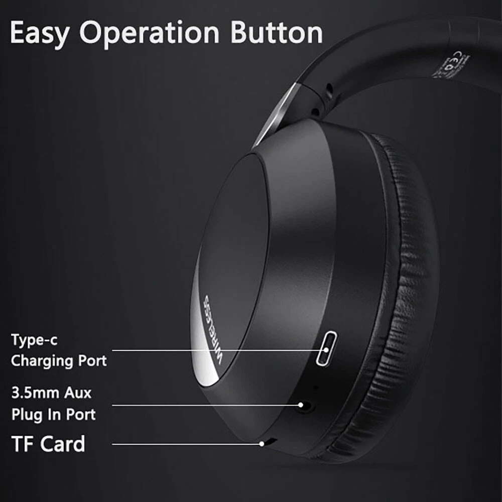 Features: -100% brand new and high quality. -It use Bluetooth V5.3 technology, delivering high speed and stable transmission. -It is equipped with soft PU skin materials over the ear, feel lightweight and contribute to your ear protection. -It has multiple playback modes, such as Bluetooth connection, 3.5mm audio cable, allowing you to enjoy endless music. -This is not only a Bluetooth headset, but also a wired headset. With the included cable, you can still enjoy favorite music when the battery runs low. -Foldable and adjustable headband length, soft ear cushion, easy for storage, and comfortable to wear for a long time. -Also, built-in microphone enables hands-free calls, delivering clear and real talking sound. -Button Function: Answer/hang up the call, play/pause music or change volume. -Strong compatibility, IOS/Android universal,it could be compatible with the bluetooth enabled devices. Specification: -Bluetooth Version: V5.3 -Operation Range: 10 Meters -Speaker Unit: 40mm -Frequency Response: 20Hz-20kHz -Impedance: 32Ω -Sensitivity: 108±3dB -Music Time: about 8 hours -Charging Time: about 2-3 Hours -Charging Port: USB Type C Package Included: 1 x Bluetooth Headphone 1 x USB Type C Charging Cable 1 x 3.5mm Audio Cable 1 x User Manual