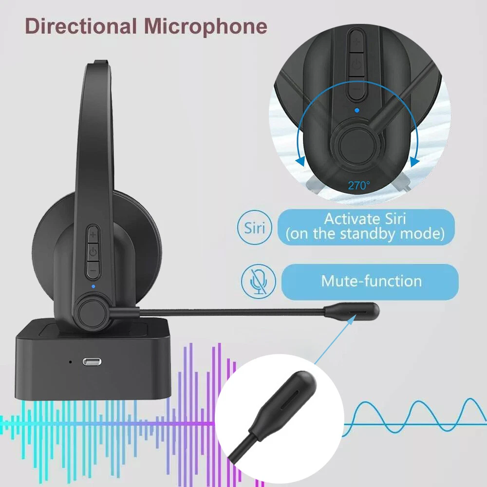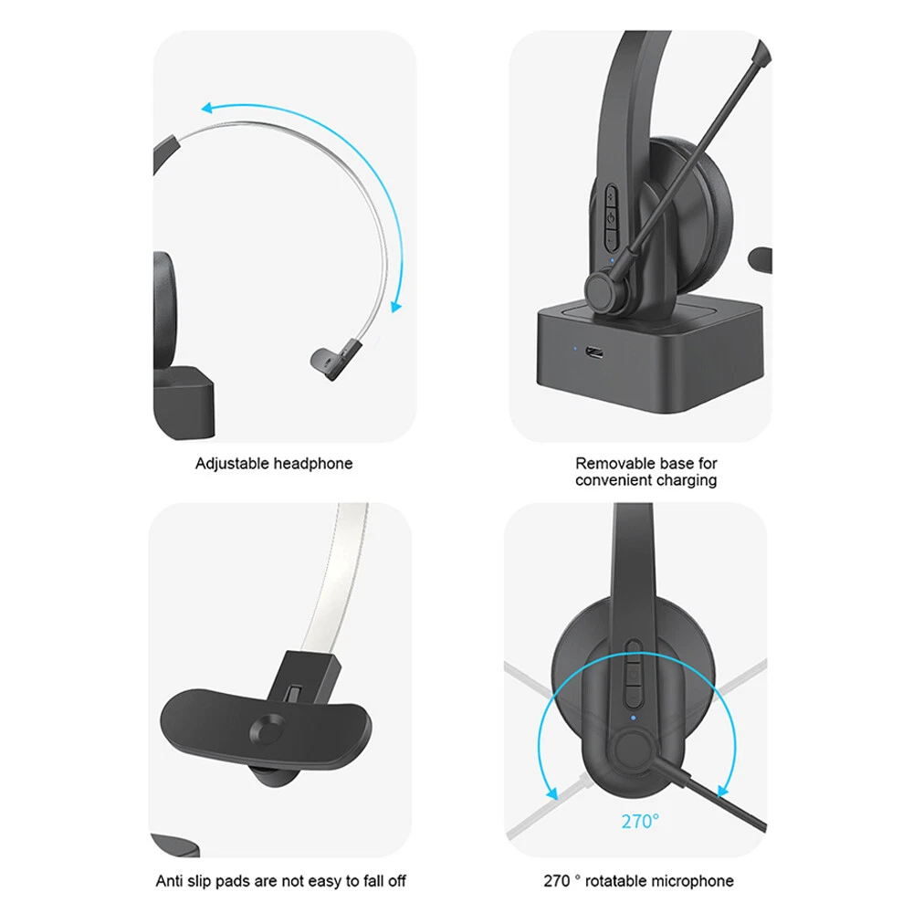 Features: Noise cancellation communication - Bluetooth call center headphones have noise cancellation function, which can keep background noise outdoors and clean up surrounding noise to create clear communication. ● Comfortable to wear - The microphone supports 270 ° rotation. Adjustable headband, suitable for different sizes of heads to wear, even if worn for a long time without feeling fatigue or pain. ● Universal compatibility - This call center Bluetooth headset can connect to computers, phones, desktops, and other devices with Bluetooth devices, achieving clear, stable, and smooth communication without jamming or delay. Charging dock - convenient for headphone storage, headphone charging, can make your computer desktop cleaner and more beautiful. Make it easy for you to work. Long talk time - Type-C fast charging, with a built-in 300mAh lithium battery, can provide you with up to 12 hours of continuous talk time. You don't have to worry about it suddenly losing power. Upgrade Bluetooth - The advanced Bluetooth CSR8615 chip ensures stable and smooth connectivity, providing you with stable and smooth phone calls and excellent customer service. HiFi Sound Quality - Ultimate Experience of HiFi Lossless Music, Realistic and Shocking Sound Quality Experience. Clean and thorough, using PET diaphragm to restore the true original sound. Specifications: *Product Name: Bluetooth Earphones *Headphone type: Head mounted *Bluetooth version: 5.4 *Supporting protocols: A2DP/HSP/AVRCP *Transmission frequency band: 2.4GHz *Transmission distance: 10 meters *Battery capacity: 300mAh *Working hours: 12 hours *Charging time: 2 hours *Input voltage: DC5V 1A *Charging port: Type-c *Frequency response: 20HZ-20KH *Speaker impedance: 2.2 Ω *Speaker diameter: 30mm *Microphone sensitivity: 108db *Speaker output power: 20mW *Compatible systems: iOS/Android/macOS/Windows *Product Material: ABS *Product color: Black Package List: 1 * Bluetooth earphones 1 * User Manual 1 * Base 1 * Type-C cable Tips: 1.Due to manual measurement, please allow for an error of 1-2cm! 2. Due to different display resolutions, please consider slight color differences! On Jan 30, 2025 at 12:07:10 PST, seller added the following information: