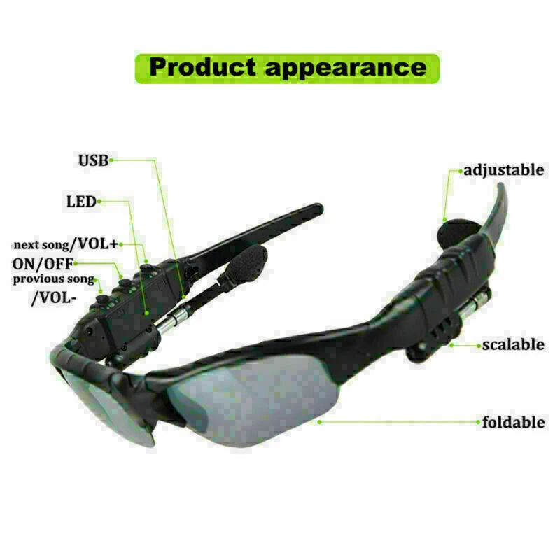 SAFE & SECURE SHOPPING 100% SATISFACTION GUARANTEED FAST SHIPPING Bluetooth UV Sunglasses Glasses Headphone Wireless Stereo Music Headset Micphone Product Description If you have any questions, please contact customer service first, do not open disputes easily, thank you! Features: Stylish appearance, unique design, personality development features Top grade sunglasses formed the main body. Supported handset and handfree profile This item is the perfect combination of practicability and fashion. Most fashionable design with foldable eyeglasses Made of polarized lenses, it has the function of anti-rays, no glare and good eye health care. Hi-Fi earphones built directly on to the frame, and can be adjusted 270 degree for comfortable fit. It can works for all Bluetooth mobile phones, you can enjoy hands-free talk with your friends. Telephone talking mode when calling in and out Can receive two bluetooth phones simultaneously Specifications: Color: Black/ White Material: ABS& PC Bluetooth version: Bluetooth V4.1 Protocol: HFP, HSP, A2DP, AVRCP Range: Max.10 meters Pairing code: 0000 Frequency: 2.4~2.480GHz Transmit power: Class 2 USB: Mini 5pin, Built-in 150mAh battery Talk time: 6 hours Standy time: 150 hours Power adapter: 5V DC Weight: 50g Package included: 1 x Bluetooth Sunglasses Headset 1 x USB cable 1 x Cleaning cloth 1 x User's manual About Us About Us We accept all payments authorized by eBay. Copyright © 2022 Tongtool