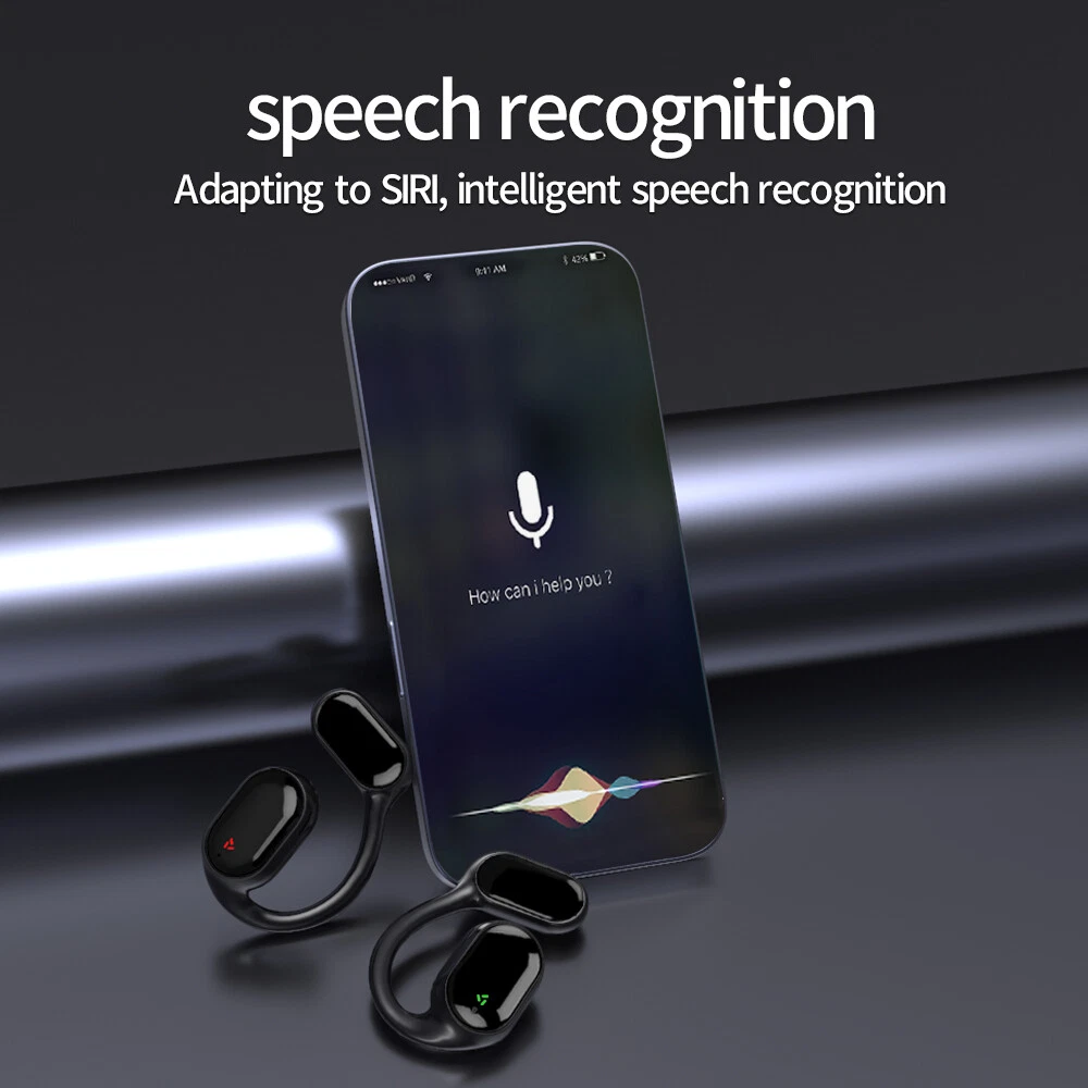 True Wireless Bone Conduction Headphones Bluetooth 5.3 Wireless Headset Earbuds 100% brand new and high-quality made. This is the first true wireless bone conduction earbuds, the very first of it's kind. Our bone conduction technology and open fit design delivers music through your cheekbones while ensuring your ears remain completely open to ambient sounds for maximum situational awareness during long-term wear. Stable Bluetooth 5.3 connectivity and convenient multipoint pairing compatible with your iOS and Android smartphones, tablets, Macs, PC computers and laptops. The large dynamic diaphragm is used for directional audio transmission without loss, creating a realistic surround sound field. Titanium wraparound headbands are lightweight and flexible to ensure maximum comfort during extended wear. These bone conduction headphones deliver wide dynamic range, rich bass and premium sound experience. Compact, slim fit design allows you to enjoy continuous music and calls for six hours at a time. Repels sweat, dust and moisture throughout your indoor or outdoor exercise routine. Easy read display on side of the headset, you'll know how much battery left. Specifications: Color: Black Battery Capacity: 50mAh Charging Case Battery Capacity: 300mAh Standby Time: 10 D ays Listening Time: 5 Hours + Additional 30 Hours From Charging Case Charging Time: 1.5 Hours Bluetooth Version: V5.3 Transmission Distance: 10M Charging Voltage: 5V Headset Weight: 15g Package Includes: 1x Bone Conduction Headphone 1x Charging Cable 1x Charging Case 1x User Manual