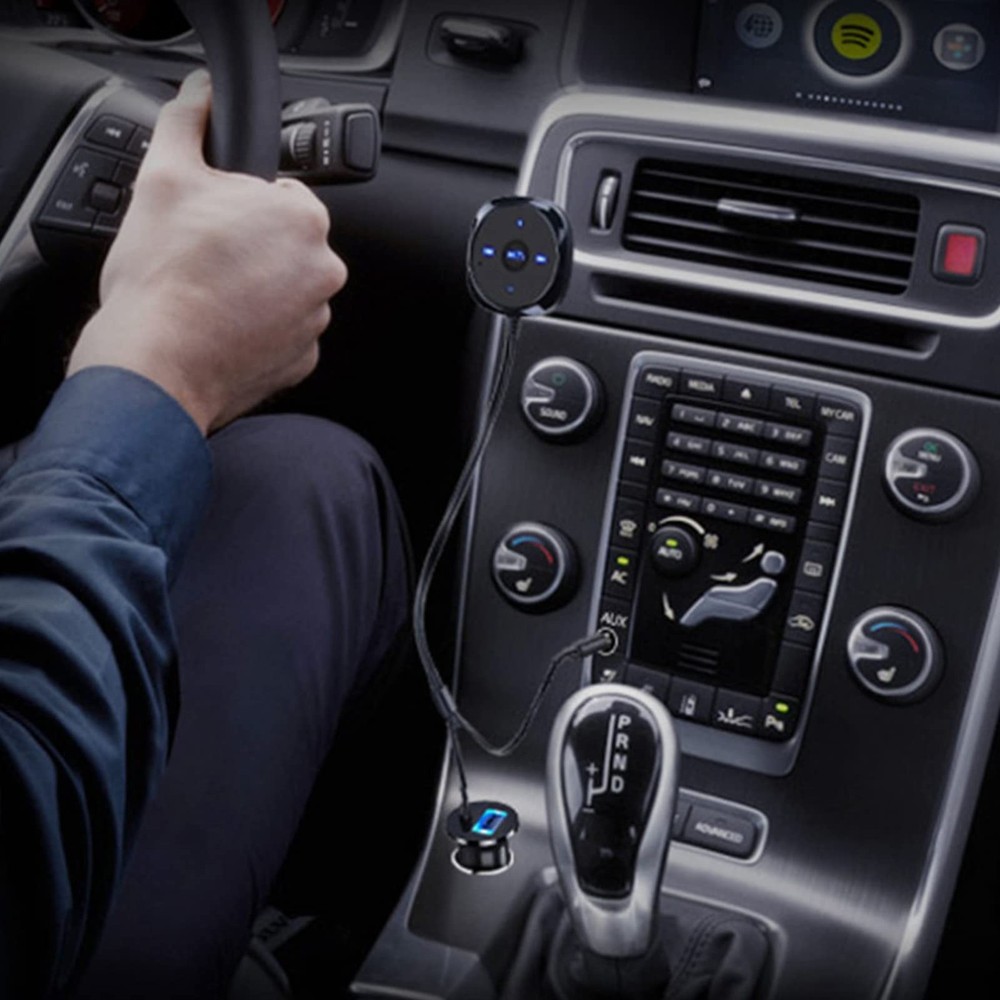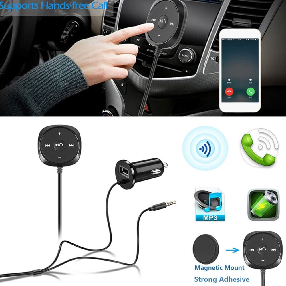 Car Bluetooth Adapter, Handsfree Calling Car Bluetooth 5.0 Audio Receiver Car Kit 5V 2.1A USB Charging Port for Cars with 3.5mm AUX Input Port Product Details Special Feature: Bluetooth 5 . 0 Brand: Sanpyl Connectivity Technology: Auxiliary, Bluetooth, USB Power Source: Corded Electric Material: Acrylonitrile Butadiene Styrene (ABS) Package Dimensions: 6.06 x 3.94 x 1.34 inches Item Weight: 2.82 ounces Date First Available: April 26, 2022 Manufacturer: Sanpyl HOW IT WORKS: This Bluetooth car kit can connect to devices like your Bluetooth smartphone or tablet and can stream calls and music to your car's speaker system and the dash mounted receiver's built in microphone for handsfree call. FUNCTION: Transforms a car audio system into a Bluetooth environment, enabling handsfree calling on the road and accessing music on mobile devices. Music player controls play, pause, previous song, next song, calls and more. APPLICATION: Bluetooth audio receiver is suitable for all cars with 3.5mm AUX input. Stream audio through the 3.5mm input in your car stereo to enjoy your favorite music in your car. Support Bluetooth mode HFP, HSP, A2DP, AVRCP. USB CHARGING PORT DESIGN: Bluetooth car kit is equipped with 5V/2.1A USB port, which can conveniently fast other USB devices, such as your mobile phone, tablet, camera, etc. AUTO POWER ON: This bluetooth car kit will automatically power on when you start the car, then automatically sync with the last connected phone (please make sure the phone's bluetooth is turned on before starting the car).