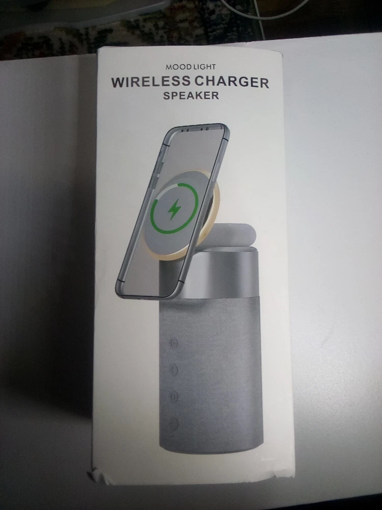 Wireless Charger and Portable Speaker With LED Mood Lighting - Light Blue. Condition is New. Shipped with USPS Ground Advantage.
