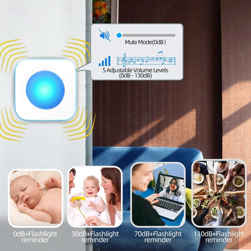 $ 7.39Wireless Doorbell Chime with 60 Melodies, 5 Volume Levels, LED Light, IP55 Waterproof