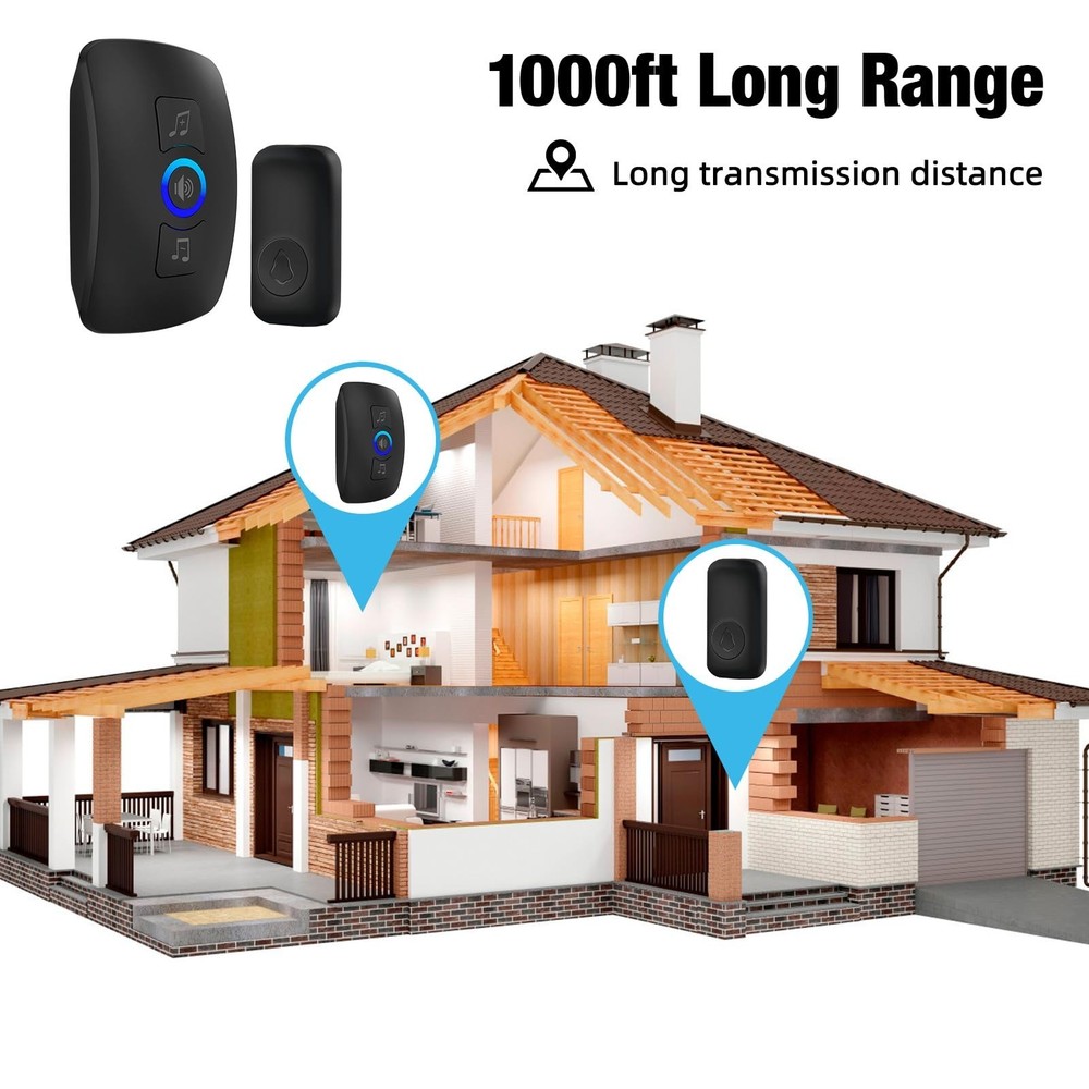 Doorbell Chime, IP55 Water Resistant, 60 Melodies, 5 Levels of Volume, LED Flashing Doorbell, 1000+ Foot Range, for Homes, Offices, Classrooms and Apartments(1 Receivers x 1 Push Buttons) Product Details Color: 1 Receivers x 1 Push Buttons Brand: Douevo MPN: Wireless Doorbell 01 UPC: Does not apply EAN: Does not apply Manufacturer: ‎Douevo Part Number: ‎‎Wireless Doorbell 01 Item Weight: ‎5 ounces Product Dimensions: ‎4 x 3 x 3 inches Country of Origin: ‎China Item model number: ‎‎Wireless Doorbell 01 Batteries: ‎1 CR2032 batteries required. (included) Color: ‎1 Receivers x 1 Push Buttons Included Components: ‎Doorbell Receivers Batteries Included?: ‎Yes Batteries Required?: ‎Yes Battery Cell Type: ‎Lithium Manganese Dioxide Date First Available: February 8, 2025 Ringtones and VolumeThe wireless doorbell has 60 unique ringtones and 5 adjustable volume levels (0 dB to 110 dB) to meet your needs in different occasions. In silent mode, you don't have to worry about the doorbell ringing disturbing your sleeping baby. The LED light of the receiver will still flash so you won't miss your visitors. The high decibel volume of 110 dB can alert the hearing-impaired or the elderly. Ultra-Long Connection RangeDouevo door chime has the characteristics of super remote control, strong penetration, stable signal, strong anti-interference, etc. It will not interfere with or be interfered with by other devices in or near your home. It can provide an ultra-wide coverage range of 1000 feet, easily passing through steel doors, wooden doors and walls. Easy to Install and UseDouevo home door bell kits receiver is already paired before delivery. No wiring or electrician installation is required when using it. Simply plug the door chimes receiver into the socket to complete the installation. The wireless door chime button can be permanently installed using heavy-duty tape (no drilling required) or strong screws. The installation is effortless and is ideal for renters, landlords, and DIY enthusiasts. Durable and Energy-savingThe door bell with chime is made of high-quality ABS material with high fire-retardant performance. IP55 dustproof and waterproof protection. The outdoor doorbell button can withstand rain, snow and extreme temperatures. It can work in a temperature range of -4F to 140F. The receiver adopts optimized circuit design. The transmitter does not consume power when not pressed. Multiple ChoicesThe doorbell chime is already paired and can be installed in one minute. Plug the receiver into the socket and it is ready to use. You can add as needed, choose 1 button with 1 receiver, or 2 buttons with 1 receiver, or 1 button with 2 receivers, etc. You can send a clear ring alarm in every corner of your home, office or garage.