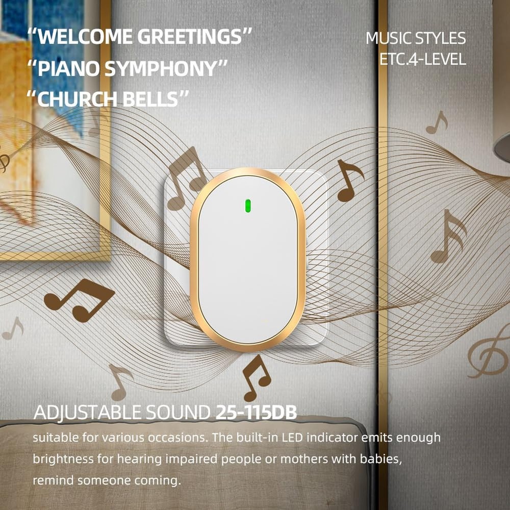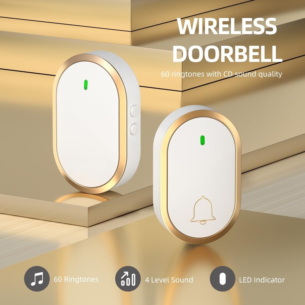 1. This wireless doorbell is a game-changer! The 1000ft range is impressive, and I love the 60 chime options—no more missing deliveries. The waterproof design and LED indicator are great bonuses, and the volume settings are perfect for any home. Easy to install, works flawlessly, and looks sleek in white and gold. Highly recommend for anyone needing a reliable, long-range doorbell!