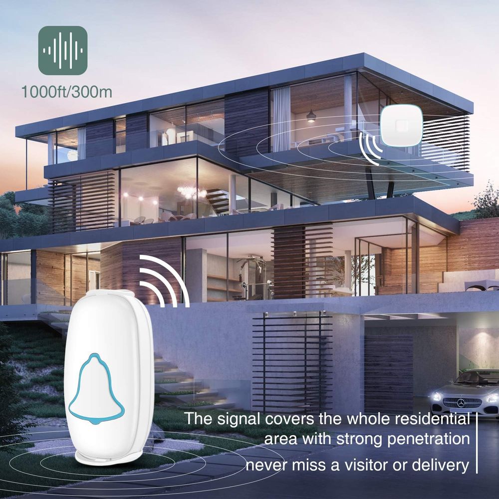 BO YING Wireless Doorbell, Bo Ying Waterproof Door Bell with 38 Melodies and Led