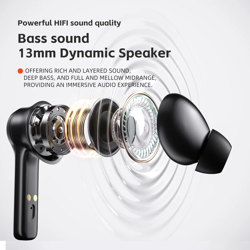 Absolutely love these wireless earphones! The sound quality is crisp and clear, with deep bass that doesn’t overpower. Bluetooth 5.3 ensures a stable connection, and the 13mm drivers deliver rich, immersive audio. The built-in mic works great for calls, and the comfortable fit makes them perfect for long listening sessions. Battery life is impressive, and the sleek design looks premium. Highly recommend for anyone looking for great sound without breaking the bank!