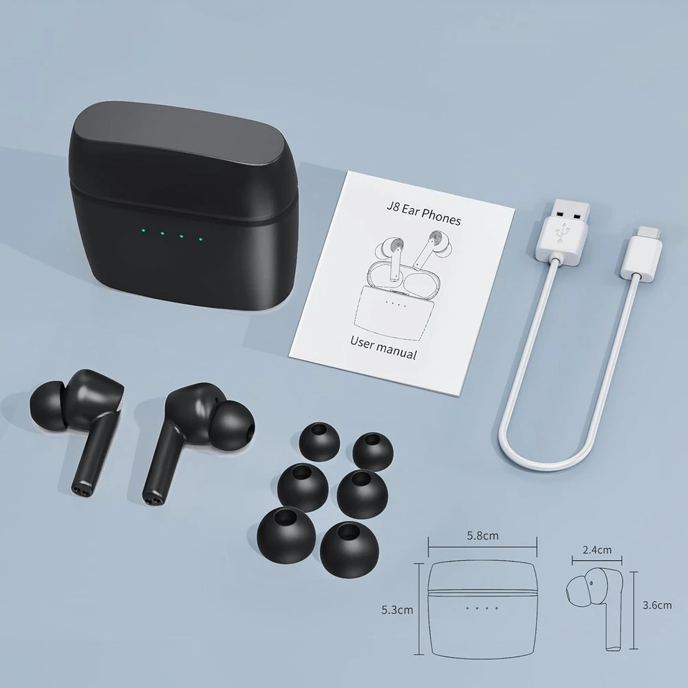 Store New Arrivals Add to Favorite View Feedback Contact Wireless Earbuds Bluetooth 5.3 Headphones Hifi Stereo Wireless Headphones With Description Item model number J8 Bluetooth Version 5.3 Frequency Range [20 Hz - 20,000 Hz] Number of Items 1 Control Method Touch Style Modern Theme Video Game, Movie, TV Series Noise Control Sound Isolation Bluetooth Range 10 Meters Controller Type Touch Control Type Voice Control,Volume Control,Siri Wireless Communication Technology Bluetooth Cable Feature Without Cable Material Plastic, Metal Model Name J8H Ear Placement In Ear Audio Driver Type Dynamic Driver Is Discontinued By Manufacturer No Specific Uses For Product Music, Sport, Gaming Included Components User Manual, Charging Cable, Wireless Earbuds, Wireless Charging Case, Eartips Age Range (Description) Adult Unit Count 1.0 Count Country of Origin China Water Resistance Level Water Resistant Carrying Case Material plastic Item Weight 3.84 ounces Connectivity Technology Wireless Headphones Jack USB Impedance 40 Ohm Color Black Form Factor In Ear Compatible Devices IPhone,ios,samsung Package Dimensions 4.09 x 2.99 x 1.26 inches Batteries 1 Lithium Polymer batteries required. (included) Carrying Case Battery Average Life 36 Hours Audio Driver Size 13 Millimeters Earpiece Shape Rounded tip Bluetooth 5.3 and One Step Pairing: J8 true wireless earbuds with the advanced Bluetooth 5.3 technology, provides faster pairing, stable connection and universal compatibility. Simply the lid open, bluetooth earbuds will connect each other automatically and then only one step easily enter mobile phone bluetooth setting to pair, you will be in your music world in a couple of seconds. Hi-Fi Stereo Sound Quality: Mysic J8 earbuds wireless headphones offers a truly natural, authentic sound and powerful bass performance with 13mm large size speaker driver- the drive area is 3.77 times than the normal drive area. Half in-ear acoustic structure and high-definition rendering technology, which can give you incredible sound quality and crystal crisp treble. You will feel like you are at a concert as the immersive sound. Ergonomic and mini Design: Adopting ergonomic half-in-ear design, and weighting only 4g of each Bluetooth headset, which brings you stable and comfortable fitting experience. Three sizes of flexible silicone tips with the inter taper, conforming the shape of your ear, securing in place and creating an exceptional seal for superior noise isolation. Bluetooth earphones are perfect for workouts, runs, sports and gaming. Touch Control and IP7 Waterproof: Features with touch control sensors, ear buds wireless earbuds can largely minimize the pressure to your ears when you touch the button for various functions. You can switch songs, answer/reject calls and activate Siri, waterproof earbuds and charging case inner Nano-coating, IP7 waterproof and sweatproof design can effectively prevent the wireless bluetooth headphones from the damage caused by the splash of sweat and raindrops. Perfect for workout, running etc. Protable Mini Charging Case: Playtime lasts for over 6 hours from single charge and total 42 hours with charging case. Adopts the premium plastic case to protect your wireless bluetooth earbuds and also looks very fashion. Charging case features LED lighting to indicate battery life as well as magnetic attraction for easy in ear headphones placement. The mini portable charging case is as big as a car key, which can be carried with you and charge your bluetooth wireless headphones anywhere. Product Description 1.Bluetooth 5.3 version 2. with 13 mm special alloy material diaphragm 3.Ergonomic comfort design, Lightweight 4.IPX7 waterproof design, perfect for sports 5.Total usage time of 42 hours ABOUT US We offer the best prices around on high quality products. Our E-store includes media such as books, movies, music and games while offering electronics, toys, sporting apparel, clothing, tools, general home, garden items and more. SHIPPING We are always working hard to ensure your package arrives as soon as possible. Please understand that some factors like weather, high postal traffic, and the performance of shipping companies are outside of our control. RETURNS We offer a 30-Day Return Policy on items which you are not completely satisfied with. You have the option for a full-refund or an exchange of the item. PAYMENT We accept PayPal. CONTACT US This page content is yet to come Please ad us to your favorite seller and visit again later Thank You CUSTOMER SATISFACTION We try our very best to make sure every customer is completely satisfied. If there's a problem, message us! We're happy to help.