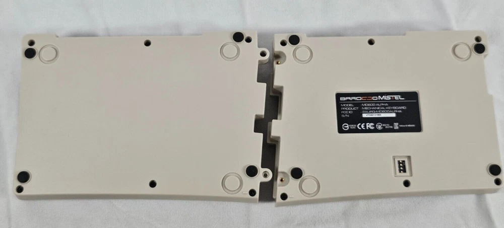 The BAROCCOMiSTEL MD600 Alpha BT is a 60% ergonomic split mechanical keyboard designed for seamless connectivity, comfort, and adaptability. With a unique Split-Alice layout, this keyboard is perfect for gamers, typists, and programmers seeking flexibility and precision. Key Features: Ergonomic Split Design – Adjust the keyboard to your preferred distance and position for optimal comfort. 60% Curvy Layout – Designed to match finger length and press distance, allowing relaxed finger positioning. Dual Mode Connectivity – Switch between Bluetooth and USB-C for both wireless freedom and wired responsiveness. Multi-Device Pairing – Connect up to 3 devices via Bluetooth, with easy switching between them. Programmable Macro Functionality – Customize key bindings to suit your personal workflow or gaming needs. Durable PBT Keycaps – Features double-shot PBT keycaps that resist fading and provide lasting stability. Adjustable Keyboard Angle – Magnetic rubber feet let you modify the angle for improved ergonomics. Additional Information: Device Compatibility : Laptop, PC, Gaming Console Battery Capacity : 2000mAh lithium battery (approx. 3.5 hours to fully charge) Key Switches : MX Mechanical (available in multiple variants) Polling Rate : USB=1000Hz, BT=125Hz Number of Keys : 64 (ANSI layout) Dimensions : 13.5 x 5.2 x 1.1 inches Quarter in photo used for scale.