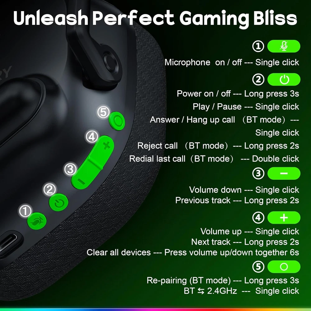 Wireless Gaming Headset 2.4Ghz & Bluetooth 5.4 Gaming Headphones with ENC Mic, Ultra-Low Latency, Stereo Sound, Soft Earmuffs, Wireless Headsets for PS5, PS4, Switch, PC, Mac Upgrade your daily routine with Wireless Gaming Headset 2.4Ghz & Bluetooth 5.4 Gaming Headphones with ENC Mic, Ultra-Low Latency, Stereo Sound, Soft Earmuffs, Wireless Headsets for PS5, PS4, Switch, PC, Mac — premium build for reliable performance and long-lasting value. Enjoy fast handling, friendly support, and a risk-free purchase backed by easy returns. Trusted seller with excellent feedback Popular item — often sells out quickly 30-day returns, no questions asked Key Benefits Feel the quality: durable materials and clean finish Save time: quick setup and easy everyday use Peace of mind: hassle-free support via eBay Messages Smart value: excellent price–performance for home, office, hobby, or professional use Item Specifics Item model number WG4 Style Wireless Input Device Interface 2.4GHz Wireless Control Method Push Button Supports Bluetooth Technology Yes Battery Life 45 Hours Noise Control Sound Isolation Department Teens Model Name WG4 Number of Items 1 Control Type Volume Control Wireless Communication Technology 2.4GHz Wireless Cable Feature Without Cable Special Feature Fast Charging, Foldable, Lightweight, Microphone Feature, Microphone Included, 3D Stereo Sound,, Noise Cancellation, Noise Isolation, Rechargeable Battery, Surround Sound, Volume Control Product Dimensions 5.59 x 3.27 x 5.59 inches Material Acrylonitrile Butadiene Styrene (ABS), Leather, Metal, Polycarbonate (PC) Age Range (Description) Adult,Kid,Teens Ear Placement Over Ear Audio Driver Type Dynamic Driver Hardware Interface Bluetooth Noise Control Features Noise Cancellation, Noise Isolation Specific Uses For Product Gaming, Professional, School Bluetooth Version 5.4 Customer Package Type Standard Packaging Water Resistance Level Not Water Resistant Item Weight 8.8 ounces Connectivity Technology Wireless Headphones Jack USB-C_jack Impedance 32 Ohms Charging Time 2 Hours Controller Type Button Color Black Form Factor Over Ear Compatible Devices PS5, PS4, PC, Mac, Laptop, mobile, Nintendo Switch (Invalid Microphone). All modes Not compatible with All xbox series Global Trade Identification Number 06977200190135 Audio Latency 20 Milliseconds Batteries 1 Lithium Ion batteries required. (included) Recommended Uses For Product Gaming Audio Driver Size 40 Millimeters Included Components 2.4GHz USB Dongle *1, Type-C Charging Cable *1, User Manual, Wireless Gaming headset *1 Earpiece Shape OVER Ear Description 🏆【Unrivaled 3D Stereo Sound for Immersive Gaming】Elevate your gameplay with our gaming wireless headset for PS4 featuring high-definition dynamic drivers that deliver rich immersive 3D stereo sound. Whether its the faintest footstep or the roar of an explosion experience crystal-clear audio that keeps you ahead in every match. Designed for ultimate realism intensifies your gaming environment and gives you the competitive edge you need to dominate the battlefield. 🔄 【Advanced Noise Cancelling with One-Touch Mute】Experience crystal clear communication with advanced noise cancelling technology that effectively blocks background noise. The built-in one-touch mute button gives you instant control over your microphone during gameplay. This wireless headset ensures your voice comes through clearly while eliminating distracting ambient sounds. 🌟【Dual Device Connectivity & Ultimate Compatibility】Seamlessly connect to 2 devices simultaneously with this versatile gaming headset. Use the 2.4GHz dongle for primary gaming while staying connected to your phone via Bluetooth. The headset works with PS5 PC PS4 Switch Mac and mobile devices. 🚫Note Bluetooth not compatible with PS4/PS5. Not compatible with Xbox. Microphone not compatible with Switch. 🎮【Ultra-Low Latency for Seamless Gaming】Elevate your gaming with our state-of-the-art wireless headset for PS4 featuring a 2.4GHz USB dongle for ultra-low latency audio under 20ms. Enjoy a truly immersive gaming experience where every sound is delivered with lightning-fast precision. Switch effortlessly to Bluetooth mode with a single press for swift responsiveness under 48ms. Embrace the freedom that takes your gaming to the next level. 🎤【ENC Omnidirectional Mic with Quick Mute】Lead your team to victory with our gaming headphones featuring a 360-degree rotatable omnidirectional mic with enhanced noise cancellation. Advanced noise-cancelling tech blocks out background noise ensuring clear communication in games like Fortnite and Call of Duty. The convenient one-click mute function gives you immediate control during intense battles. 🎧【All-Day Comfort and Marathon Battery】Experience unparalleled comfort with our gaming headset crafted with an adjustable headband that evenly distributes pressure. The breathable earmuffs provide excellent noise isolation while moisture-wicking fabric keeps you cool. With up to 45 hours of battery life and quick 2-hour USB-C charging you can game uninterrupted for days. ✅【Portable Design with Smart Features】Our lightweight foldable wireless headphones feature easy storage and travel-friendly design. The advanced noise cancelling and one-touch mute functionality combine with dual device connectivity making this the perfect companion for gamers on the move. Enjoy high-quality sound and convenient features anywhere you go. Product description Gaming Headset for Men Level up your game with Gaming headsets— 3D sound , crystal-clear mic, and u ltimate comfort for non-stop gaming . Comfortable & Crystal-Clear Mic for Gamers Elevate your gaming with wireless gaming headphones—stylish design, 3D sound, crystal-clear mic , and ultimate comfort for endless play. Perfect for Young Gamers with Clear Sound/Comfort Ideal for young gamers, the wireless gaming headset offers clear sound, comfort, and easy communication. With soft ear cups a