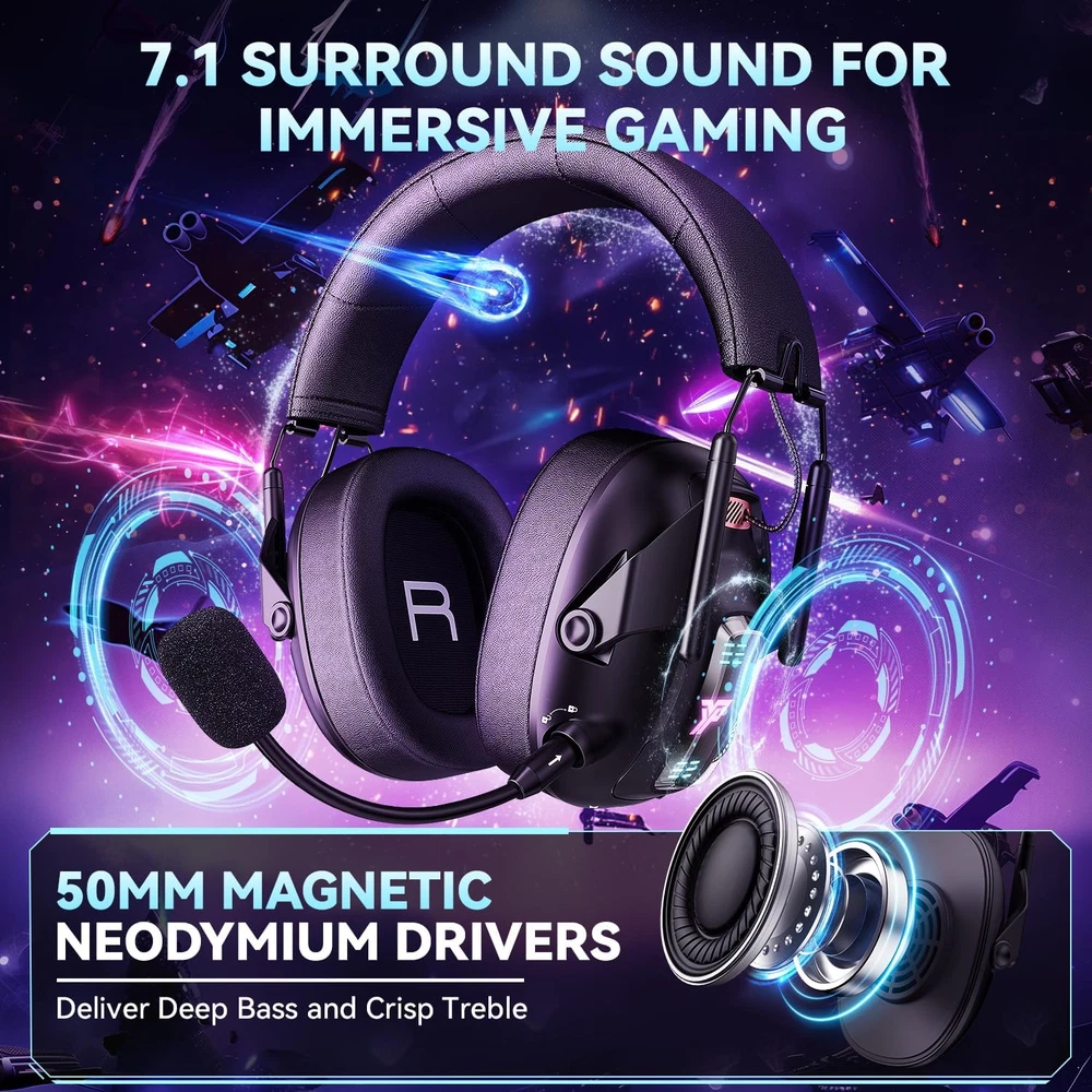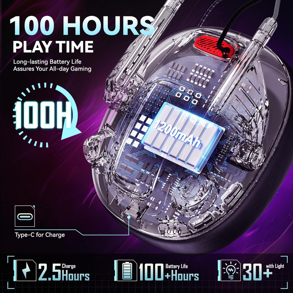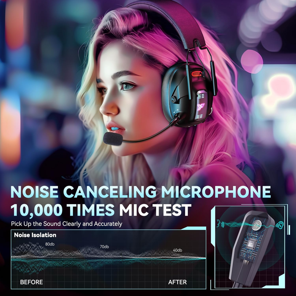 3-in-1 Connection Mode: Experience ultimate gaming immersion with the YP-1 Wireless Gaming Headset, designed for compatibility across various devices. ①. Enjoy wireless connectivity for PCs, PS4, PS5, and laptops via the 2.4GHz receiver. ②. Connect to Mac, Switch, and mobile devices using Bluetooth 5.3 (please note that Bluetooth does not support PS5 or PS4). ③. For Xbox One, Xbox Series, or any devices with a 3.5mm port, only the wired mode is supported. Long Battery Life & Low Latency: Enjoy extended gaming sessions without interruptions, powered by an impressive 1200mAh battery capacity. This robust battery allows for up to 100 hours of continuous gameplay on your favorite titles, unlocking new levels of excitement. With our low latency feature, experience video and audio without sync issues, enhancing your overall user experience. (Tip: Use USB-C for a full charge in just 2.5 hours; expect 100+ hours of gameplay without lighting and 25-30 hours in lighting modes.) Foldable Design & On-ear Function Control: Our foldable headphones are designed for ultimate convenience, easily fitting into any bag or backpack. This compact design is perfect for commuting, traveling, or working out, allowing you to enjoy your music or calls on the go. With user-friendly on-ear controls, switching between 2.4G/BT modes, adjusting effect light, and managing volume is a breeze! The setup includes an indicator light, charging port, 3.5mm jack, and microphone port for easy portability, so you can stay focused on your games without distractions. Superior Sound Quality: Dive into the game with our 50mm speakers and advanced surround sound technology. Capture every nuance and immerse yourself in lifelike sound effects! The noise-canceling microphone ensures crystal-clear communication with your teammates, fostering seamless teamwork during those high-octane gaming sessions. Fantastic Humanized Design with Premium Materials: Crafted for superior comfort, our headphones feature luxurious air protein over-ear pads that make those long gaming sessions a breeze! Lightweight and durable, these headphones ensure comfort during extended use, without sacrificing sound quality. Tips: Please note that the Bluetooth function is not compatible with PC, PS4, or PS5 directly. Also, only the 3.5mm wired mode is compatible with Xbox Series. Make sure to check your setup for the best experience! Compatible with Xbox via included 3.5mm adapter. Wireless mode works with PC/PS5/Nintendo Switch; for Xbox, plug in the included 3.5mm cable to the controller. Product description Xbox Compatibility: Requires wired connection via included 3.5mm adapter (plug into controller). Wireless mode not supported on Xbox The video showcases the product in use. The video guides you through product setup. The video compares multiple products. The video shows the product being unpacked. Wireless Gaming Headset Merchant Video 1 ULTRA-LOW LATENCY 2 LONG LASTING BATTERY LIFE 3 ENC MICROPHONE 4 EASY OPERATION