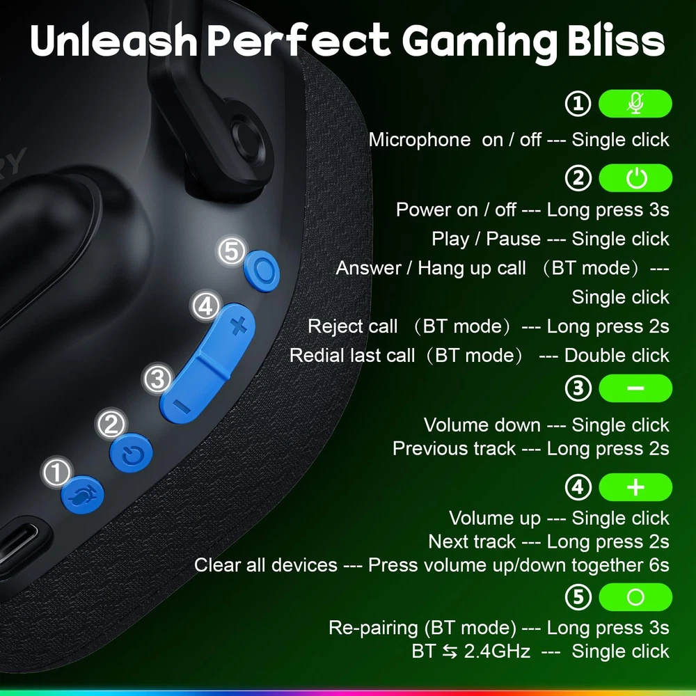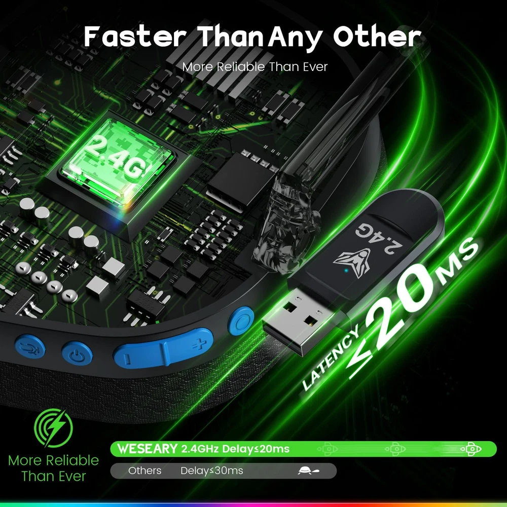 Wireless Gaming Headset with 2.4GHz Bluetooth 5.4 ENC Mic for Immersive Gameplay