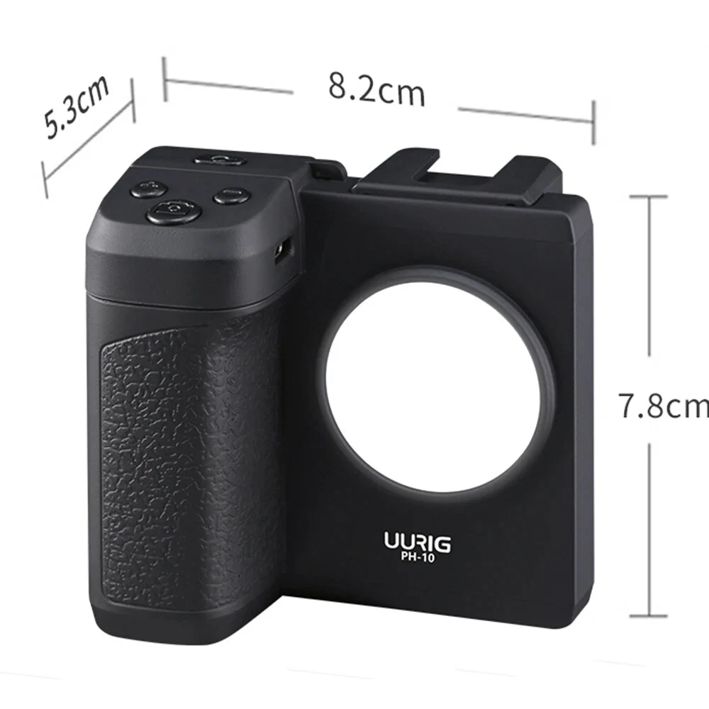 Wireless Handle G Rip Phone Holder Stabiliser for Smartphone Remote Control LED This product data sheet is originally written in English. Introducing the UURIG PH-10 Wireless Handle G Grip Phone Holder Stabilizer, designed specifically for smartphone enthusiasts and content creators. This versatile stabilizer is perfect for vlogging, live streaming, and capturing high-quality videos with ease. The handle grip, featuring a clamping width of 58-66mm, is compatible with most smartphones on the market, allowing you to enhance your shooting experience by providing increased stability and weight distribution. Whether you are filming a quick vlog or a professional video, the PH-10 ensures a smooth operation with its ergonomic design, making it comfortable to use for extended periods. This innovative stabilizer comes equipped with a detachable wireless remote control, enabling you to operate your smartphone from a distance of up to 30 meters. With just a click, you can take photos or start and stop video recording seamlessly. Additionally, the built-in LED fill light offers three adjustable brightness levels, ensuring you always look your best in front of the lens. The inclusion of a cold shoe mount allows for the attachment of external microphones, elevating the audio quality of your recordings. The compact and lightweight design makes it easy to carry, and the 1/4 inch screw hole at the bottom provides the option to mount it on a tripod or selfie stick for added stability. Key Features: - Universal compatibility with smartphones ranging from 58-66mm in width. - Wireless remote control with a 30-meter effective range for convenient operation. - Built-in LED fill light with 3 brightness levels for enhanced lighting in your videos. - Cold shoe mount for attaching microphones, improving audio clarity. - Lightweight and portable design, suitable for various shooting scenarios. UURIG PH-10 Wireless Handle G rip Phone Holder Stabilizer for Smartphone Vlog Remote Control 1/4"LED Light for iPhone Android Features: 【Universal Phone Handle Grip】 Featuring 58-66mm clamping width, the handle grip is compatible with most smartphone on the market. You can use the handle grip to increase the holding weight and stability of smartphone, one-hand operate and stable to use. 【With Wireless Remote Control】 With a detachable remote control for more flexible wireless operation and about 30M effective control range. Just click the camera button to control the phone to take pictures, and enter the recording interface, then click the button to start recording, click again to stop recording. What's more, Android phones can achieve Zoom In/ Zoom Out function by the remote control. 【Built-in LED Fill Light】 The handle grip has a LED fill light in the front side, which provides you with soft white light to make you look more beautiful before the mobile phone lens. Supports 3 levels adjustable brightness and built in rechargeable lithium battery. 【With a Cold Shoe Mount】 The top cold shoe mount allows you to install a microphone to pick up more clear sound and make your video recording more professional. 【Multi-scene Use】 Compact and lightweight, easy to carry around. With a 1/4 inch screw hole at the bottom, the handle grip not only can be hold by one hand, but also can be installed to desktop tripod or selfie stick for more stable usage. Specifications: Brand: UURIG Model: PH-10 Material: ABS + Rubber Clamping Width: 58-86mm Wireless Control Distance: about 30M Charging: 5V/ 1A Type-C Item Size: 8.2 * 7.8 * 5.3cm/ 3.2 * 3.1 * 2.1in Item Weight: 130g/ 4.6oz Packing List: 1 * Phone Handle Grip 1 * USB Charging Cable Introducing the UURIG PH-10 Wireless Handle G Grip Phone Holder Stabilizer, designed specifically for smartphone enthusiasts and content creators. This versatile stabilizer is perfect for vlogging, live streaming, and capturing high-quality videos with ease. The handle grip, featuring a clamping width of 58-66mm, is compatible with most smartphones on the market, allowing you to enhance your shooting experience by providing increased stability and weight distribution. Whether you are filming a quick vlog or a professional video, the PH-10 ensures a smooth operation with its ergonomic design, making it comfortable to use for extended periods. This innovative stabilizer comes equipped with a detachable wireless remote control, enabling you to operate your smartphone from a distance of up to Brand phone Camera Type Phone Holder package Yes origin Mainland China Connectivity Wireless model Ulanzi CG01 Features LED photography accessories type Creator Accessories choice yes Mounting Type Grip
