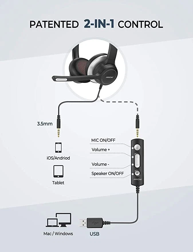 As one of the leader of audio products, Mpow works passionately on the innovation of design and technology to create products with simplicity and usability to all over the world. Mpow proudly stands behind every product offered. Mpow 328 USB/3.5mm Computer Headset (Lightweight Version) Focus on the conversation, not the headset Mpow 328 computer headsets are developed in light materials for optimal comfort. It feels comfortable and non-intrusive even though many hours talking. This call center headset comes with a 270-degree rotatable microphone, which provides high-end noise cancellation. Also, you could use the microphone on either right or left side Wireless Headphones Bluetooth Headset Noise Cancelling Over Ear With Microphone As one of the leader of audio products, Mpow works passionately on the innovation of design and technology to create products with simplicity and usability to all over the world. Mpow proudly stands behind every product offered. Mpow 328 USB/3.5mm Computer Headset (Lightweight Version) Focus on the conversation, not the headset Mpow 328 computer headsets are developed in light materials for optimal comfort. It feels comfortable and non-intrusive even though many hours talking. This call center headset comes with a 270-degree rotatable microphone, which provides high-end noise cancellation. Also, you could use the microphone on either right or left side 40mm driver for advanced audio performance 2 in 1 in-line volume control for wide compatibility On-ear Protein memory earmuff for optimal wearing comfort Noise-cancelling microphone provide excellent soundstage Free up Your Hands Handling multiple tasks at the same time is a common phenomenal that you may face in the busy office. Mpow Skype headset with microphone allows you to continue to work on other tasks while taking calls. You do not need to hang up while typing, taking notes, etc Better Conversation The most important function of a call center headset is to eliminate background noise and let customers hear your voice clearly. Mpow 328 USB headphone with microphone is a premium performance business headset, delivering crystal-clear conversations for closer connections with your caller Broad Compatibility Compatible with common calling applications across almost all platforms and operating systems: Windows 2000/7/8/10/XP/Vista, Mac OS X, iOS, Android, Tablet PC, cellphone and more devices with 3.5mm audio jack. (Notice: Mpow HC6 is not compatible with macOS 10.15.6 temporarily. If need, please choose Mpow 071) Noise Reduction Sound Card Mpow USB computer headset is engineered with noise reduction sound card in the control box. It helps to reduce static noise and echo, optimize the sound for conversation and music. A perfect business headset for voice calls, Skype, webinars and more Flexible & Tailored Fit When it comes to choosing a headset, comfort may be one of the priorities that you will consider. 90°rotatable earcup and adjustable headband fit diverse ear and head shapers. Soft, breathable memory-protein earpads brings unmatched comfort. Weighs only 4.8oz (137g), you will feel as if there were noting on ears Retractable Headband The retractable headband of Mpow 328 PC computer headsets decorated with brushed metal serves for the most appropriate size for various individuals. Comfortable and fit for both ears and heads, perfect in longtime business work Excellent Durability Mpow 3.5mm/USB business headset is engineered to withstand years of use. Durable materials and a sleek contemporary business style deliver an attractive look that’s built to last. The upgraded metal headband can be bent and twisted into any directions with less risk of breaking Item Specifics Brand : Mpow Connectivity : 3.5mm Jack Colour : Black Type : Ear-Pad (On the Ear) Number of Earpieces : Double Form Factor : Headband Wireless Technology : USB Model : Mpow HC6 Features : Noise Cancellation,Built-in Microphone Microphone Type : Built-In Band : HF Payment We Accept Paypal Only. Shipping We will ship to your eBay address. Please make sure your eBay address is correct before you pay. We will ship out your order within 2 business days after receiving your verified payment (Excluding Weekends and Public Holidays)! Item located in the USA, We will ship out your order via USPS or UPS . It will take 3-8 business days to you. If you can't track your parcel or didn't receive your parcel, please kindly contact with us. Returns We offers 30-day refund, and 1 year manufactured warranty on all products, Warranty period starts from the date of purchase.We are not responsible for any kind of compatible issues, or problems related to any specific software or games. Please check our description carefully before purshing. If there is not anything wrong with our product or description, we wont bear the return shipping. In order to return an item you must contact us to request a Return Merchandise Authorization Number (RMA) Contact Us We try to make sure you have a pleasant shopping experience with us, so that we could do more business with you. If there is any dissatisfaction, please email us. We will try our best to resolve the issues. Please give us the opportunity to resolve any problem. PS. you may contact us by 'Ask a question' FM tranimitter On Sale Store Promotion You may like Store Category Store Home Home&Garden (G&V) Big discount Other Hot Item Mpow USB/3.5mm Wired Headset for PC Computer Headphones & Mic Noise Cancelling USD 38.97 New List Item Mpow USB/3.5mm Wired Headset for PC Computer Headphones & Mic Noise Cancelling USD 38.97 Wireless Headphones Bluetooth Headset Noise Cancelling Over Ear With Microphone As one of the leader of audio products, Mpow works passionately on the innovation of design and technology to create products with simplicity and usability to all over the world. Mpow proudly stands behind every product offered. Mpow 328 USB/3.5mm Computer Headset (Lightweight Version) Focus on the conversation, not the headset M
