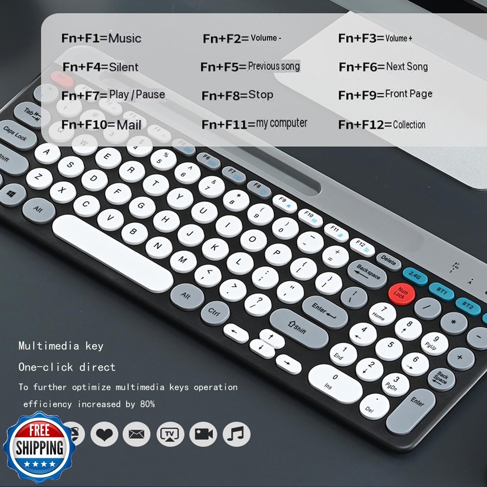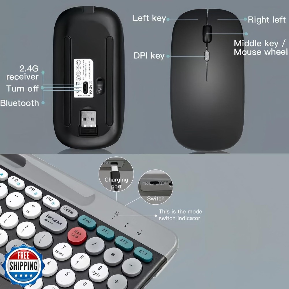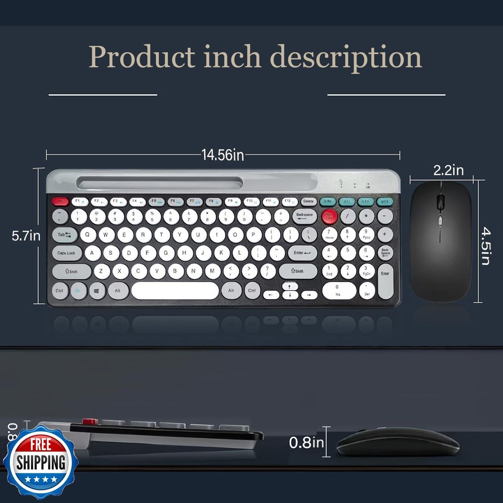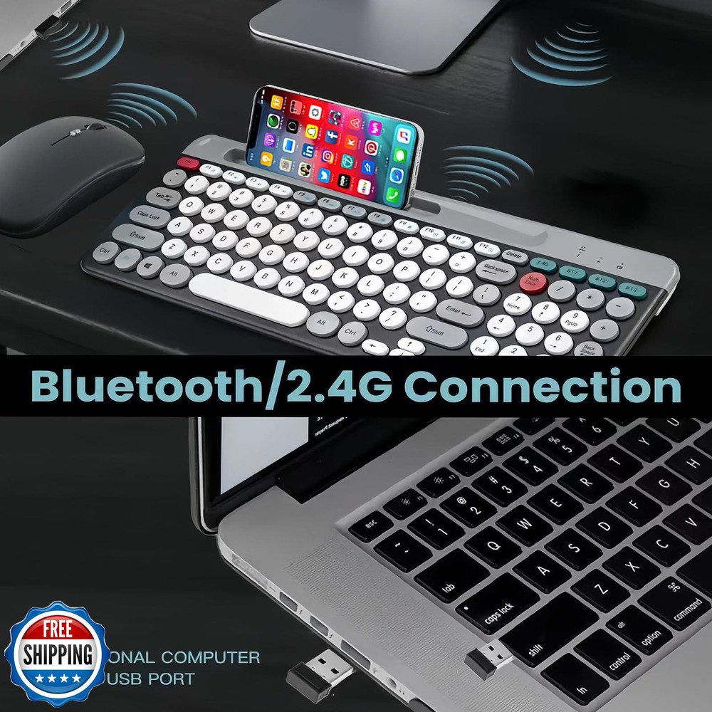 Wireless Keyboard and Mouse Combo with Phone Tablet Holder, Rechargeable Dual-Mode (Bluetooth 5.0 and 3.0 +2.4G) Multi-Device Silent Mouse for Windows, iPad, Tablet, MacOS,iOS,Android (White+Grey) Features  2.4G & Bluetooth 5.0 and 3.0 Keyboard and Mouse:multi-device wireless keyboard and mouse supports 3 devices to connect at the same time, (2.4G wireless + Bluetooth 5.0 + Bluetooth 3.0). Plug-and-play 2.4G receiver, no need to install additional software or drivers, You can type, switch and keep typing! Less noise,more focus:intimate mute button design,so that you do not disturb others when playing office and games;Low-profile keys offer quiet typing,Silent in a wireless USB mouse and keyboard. Phone Tablet Keyboard with Integrated Stand : Bluetooth phone keyboard includes feet will prevent your wrist from hurting while long sessions of typing,The sturdy built body will keep your devices stable;the system supports windows 7 and above,MAC OS,iOS ,Android or USB compatible devices; safety precaution:keep the equipment dry and away from precipitation,moisture,and all kinds of liquids and condensate,do not use this product with wet hands,do not use or store the device in dusty or dirty places,do not store the equipment in hot or cold conditions(this may be damage the equipment).do not drop,knock or shake the equipment(use may cause damage);  FAQ: if the operation is fail,perform the following steps:1.check the connector integrity,2.check the connection to the device,3.check your device settings,4.check the battery level,5. disconnect and reconnect the device,restart the device if the problem persists,contact us directly,we will do our best to deal with it. Shipping Free & Fast Shipping: We offer free shipping to most of the USA with a normal delivery time of 3-7 days. However, due to the current situation, additional delivery time (up to 3 weeks) may be required for some items. Alternative Carriers: We may use alternative carriers (e.g., USPS, FedEx, UPS) to ensure your package arrives safely and on time. Due to the use of multiple carriers, we are unable to provide a tracking number automatically. Handling Time: Orders are processed and shipped within 1-2 business days of receiving cleared payment. Shipping Restrictions: Shipping to Alaska, Hawaii, Puerto Rico, Guam, and other US territories may incur shipping charges or delivery restrictions. Please contact us before ordering, or your order can be refunded/cancelled. State Restrictions: Certain items may not be shipped to California due to state regulations. Contact for Tracking Updates: If you require tracking updates or have any concerns about the delivery of your order, please feel free to contact us, and we will be happy to assist you. Return Policy 30-Day Hassle-Free Returns: If you are not completely satisfied with your purchase, you can return the item for free within 30 days of receiving it for a full refund or exchange. Easy Return Process: Contact us, and we will provide you with a prepaid return shipping label and detailed instructions. No Restocking Fee: There are no restocking fees for returns. However, the buyer is responsible for return shipping costs if the return is not due to a seller"s error. Refund Processing: Refunds will be processed within 1 business day of receiving the returned item in its original condition. Feedback Your feedback is extremely important to us. We strive to provide the best products and customer service possible. If you are satisfied with your purchase, please take a moment to leave us a positive review. If you have any concerns or issues with your order, please contact us before leaving negative feedback. We are committed to resolving any problems and ensuring your satisfaction. Contact Us If you have any questions or concerns, please feel free to reach out to our customer support team. You can contact us through the eBay messaging system. We are available Monday to Friday, 9:00 am to 5:00 pm EST, and we will do our best to respond to your inquiry within 24 hours. Thank you for supporting our small family business!