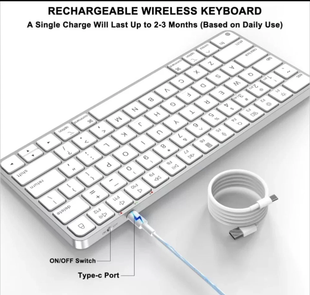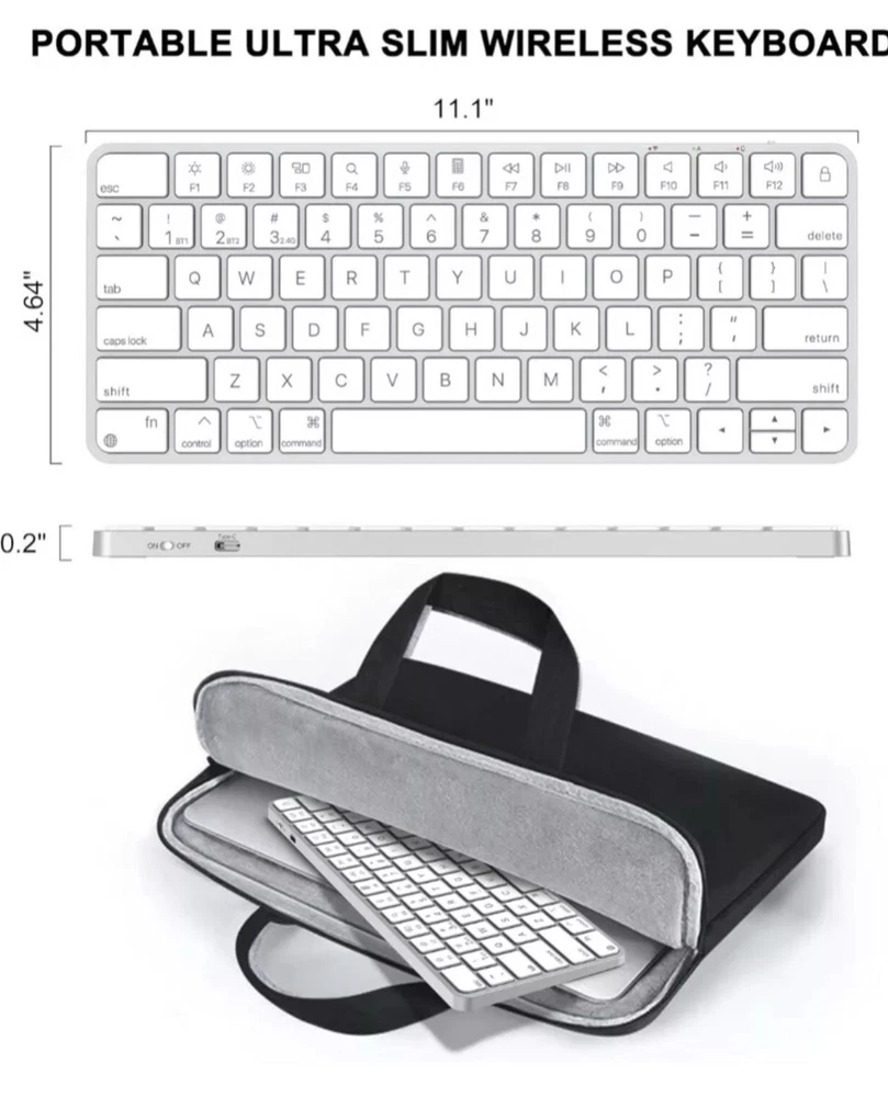 This is a Mini Wireless Keyboard designed for Mac with Bluetooth and 2.4G USB dual-channel connectivity options. It offers versatility with multiple connection methods such as Wireless, Bluetooth, USB, and more. Perfect for use with Mac computers, this keyboard provides a convenient and efficient typing experience.