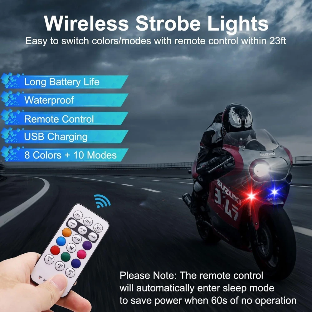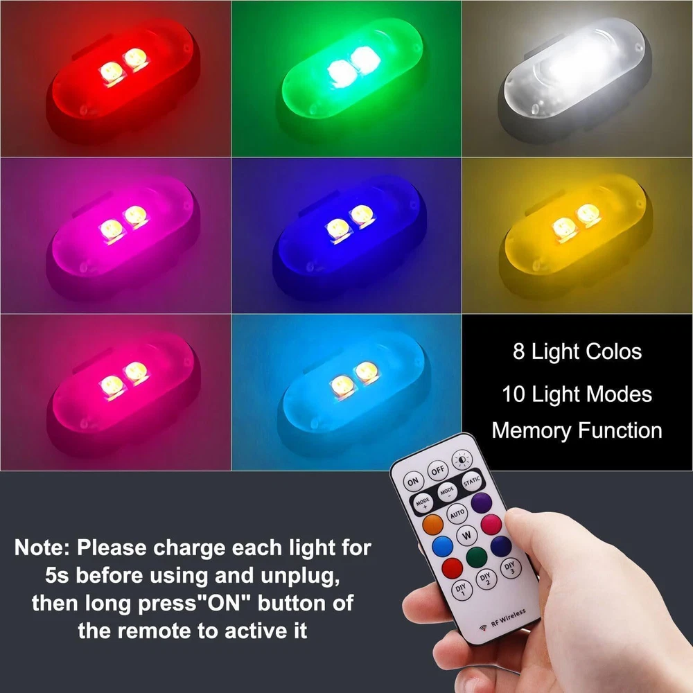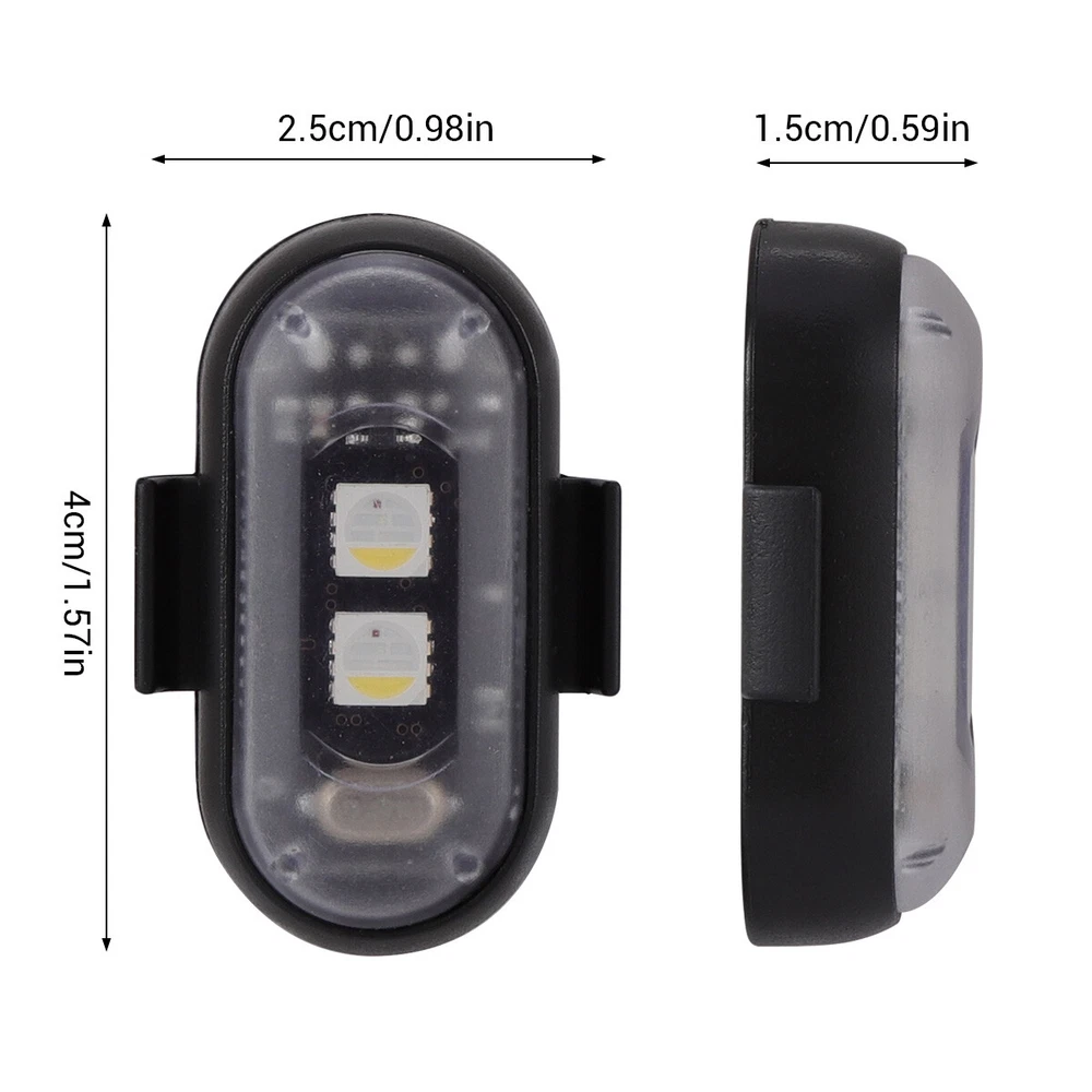 Wireless LED Strobe Light RGB 8 Colors Rechargeable Flashing Warning Lights Lot Features: 【8 kinds of lighting colors】 white, red, green, blue, yellow, purple, pink color,sky blue. Long (2 seconds) to the machine, short to adjust the mode. 【MultipleModes for your choose】 Seven-color fast flashing, seven-color slow flashing, seven-color mode, seven-color always-on, aviation mode, cycle mode, etc. Thirty modes with memory function. 【Using high-quality】 high-brightness multi-color wicks, high-brightness lamp beads enhance driving warnings, and are not afraid rear-end collisions 【High light lamp beads】better for warning function,super bright even at daytime. 【Widly applications】suitable for drones, traversing aircraft, fixed-wing, helicopters, motorcycles, etc. Sepcification: Size 4cm*2.5cm*1.5cm Net weight 7g Material: ABS Color: black+transparent Lamp bead model: 5050 Waterproof grade: IP65 Remote control distance: about 5m Charging interface: micro USB Number of light beads: 2pcs Input voltage: 5V Power: 5w Battery capacity: 110MAH Green light display when charging, off when full 8 lights: white, red, green, blue, yellow, purple, pink yellow, ice blue 10 modes: pilot flash, snap flash, airplane flash, the above 3 cycles, fast and slow flash, breathing flash, slow flash, pop flash, warning flash, always on Suitable for drone, traversing airplane, fixed wing, helicopter, motorcycle, etc. Bike light, brake light, drone light, license plate light, off-road light, tail light, turn signal light, underbody light, warning flash, wheel light (Note: airplane lights can't be used when charging) Package: Lamp*2 Charging Cable*2 Velcro*2 Rubber band *4 Remote Control*1 Delivery details Payment Terms of sales Feedback Contact us Delivery details 1. BUSINESS DAY MONDAY- FRIDAY FAST SHIPPING FROM USA. 2. All orders and payments received before 4PM EST (1PM PST) will be shipped the same business day. 3. No shipping on Saturday,Sunday or USA Public Holidays 4. No responsibility for any custom duty Payment We accept payment by PayPal only. Terms of sales 1. We offer a 60 day money back guarantee or exchange. 2. Buyer pays return shipping and we pay replacement shipping. 3. If you want to initiate a return,please contact us to get a returning address before sending the item back. Feedback 1. We strive to provide the best products and services. 2. Your positive feedback 5 stars DSR help us do better. 3. If anything about your transaction did not meet expectations, please CONTACT US and give us the opportunity to make things right. We are always here to help. Contact us Please do not hesitate to CONTACT US . You can message 24/7 on eBay for all questions and inquiries. We will get back to you within one business days at the latest from Monday- Friday.