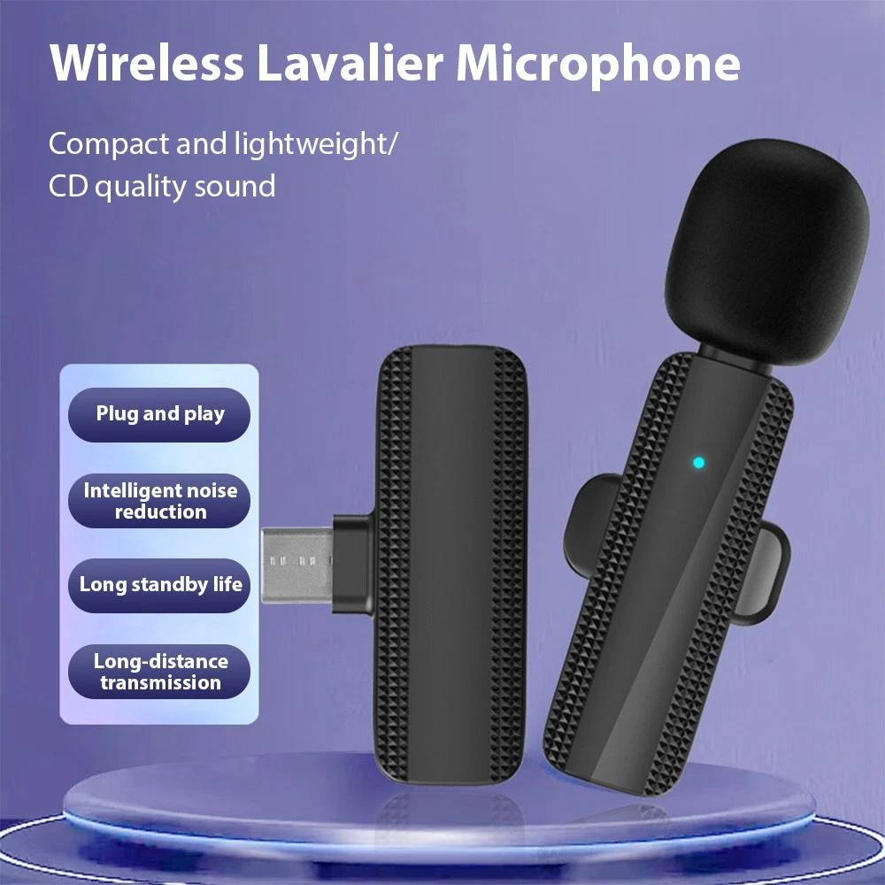Feature: 1. 【Plug and Play Wireless Lavalier Microphone】: This wireless lavalier microphone is designed for ease of use. Simply turn on the device and plug in the receiver for an automatic connection. No complicated setup or operation is required, making it perfect for live broadcasting, recording, and hosting. 2. 【Clear and Accurate Sound】: With a high-sensitivity microphone head and 360° omnidirectional pickup, this wireless lavalier microphone captures sound quickly and accurately. The high-density anti-spray sponge reduces environmental interference, ensuring every detail of your voice is recorded clearly. 3. 【20 Meters Barrier-Free Connection】: This high-performance wireless microphone offers a stable signal and a barrier-free distance of over 20 meters, allowing you to record freely without limitations. Itu0027s ideal for outdoor broadcasting and recording. 4. 【Intelligent Noise Reduction】: The built-in noise reduction chip effectively identifies and reduces background noise, ensuring clear recording even in noisy environments. This feature makes it a great choice for outdoor broadcasting, live streaming, and recording in various environments. 5. 【Wide Compatibility and Easy Charging】: This wireless lavalier microphone is compatible with a variety of devices including smartphones, cameras, and laptops. The receiver features a built-in charging interface, allowing you to charge while using the microphone. The high-sensitivity mobile receiver ensures stable transmission, making it a versatile tool for all your recording needs. Specification: Features: 【Plug and Play Wireless Lavalier Microphone】: This wireless lavalier microphone is designed for ease of use. Simply turn on the device and plug in the receiver for an automatic connection. No complicated setup or operation is required, making it perfect for live broadcasting, recording, and hosting. 【Clear and Accurate Sound】: With a high-sensitivity microphone head and 360° omnidirectional pickup, this wireless lavalier microphone captures sound quickly and accurately. The high-density anti-spray sponge reduces environmental interference, ensuring every detail of your voice is recorded clearly. 【20 Meters Barrier-Free Connection】: This high-performance wireless microphone offers a stable signal and a barrier-free distance of over 20 meters, allowing you to record freely without limitations. It's ideal for outdoor broadcasting and recording. 【Intelligent Noise Reduction】: The built-in noise reduction chip effectively identifies and reduces background noise, ensuring clear recording even in noisy environments. This feature makes it a great choice for outdoor broadcasting, live streaming, and recording in various environments. 【Wide Compatibility and Easy Charging】: This wireless lavalier microphone is compatible with a variety of devices including smartphones, cameras, and laptops. The receiver features a built-in charging interface, allowing you to charge while using the microphone. The high-sensitivity mobile receiver ensures stable transmission, making it a versatile tool for all your recording needs. Specifications: Directivity: 2.4G wireless Omnidirectional Pickup: 10mm Electronic capacitive head sensitivity: -45db Signal to noise ratio: <75db frequency response: 20HZ-20KHz sampling rate: 48K/24BIT Interface Type: Type-C Microphone Battery Capacity: 65mAh Type: 1 Receiver + 1 Microphone, 1 Receiver + 2 Microphone (optional) Microphone Size: 6 * 1.5 * 1.5cm/2.4 * 0.6 * 0.6inch Receiver Size: 4.5 * 2.2 * 0.7cm/1.8 * 0.9 * 0.3inch Note: The real color of the item may be slightly different from the pictures shown on website caused by many factors such as brightness of your monitor and light brightness. Please allow slight manual measurement deviation for the data. Packing List: 1 x Receiver 1 x Microphone 1 x Microphone Back Clip 1 x Conversion Adapter 1 x Instruction Manual 1 x Charging Cable Package List: 1 x Receiver 1 x Microphone 1 x Microphone Back Clip 1 x Conversion Adapter 1 x Instruction Manual 1 x Charging Cable