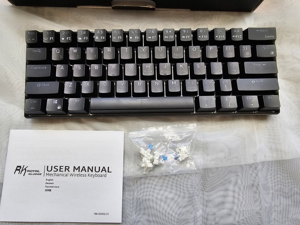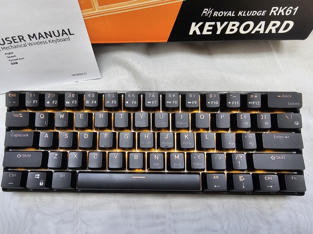The product is a Royal Kludge RK61 wireless mechanical keyboard in black color, featuring a QWERTY layout with English language support. It is a compact gaming keyboard with Bluetooth connectivity and portable design. The keyboard is a unit from China and comes in new/open box condition, allowing for convenience and customization with software. Perfect for gamers looking for a high-quality, wireless mechanical keyboard for their gaming setup.