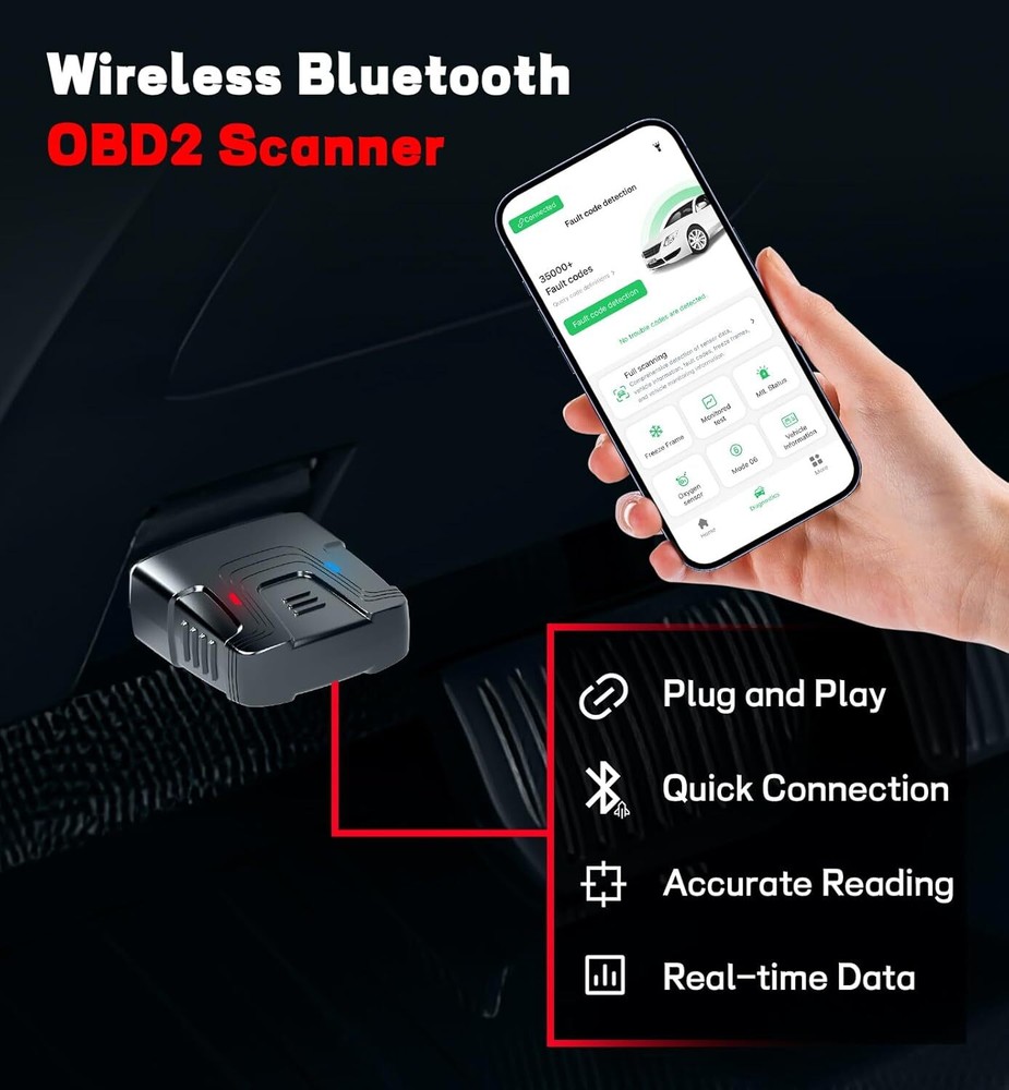Bluetooth OBD2 Scanner for Cars - Wireless OBD2 Scan Tools & Code Reader for iPhone/Android Wireless Auto Diagnostic Tool to Read and Clear Error Codes Live Data Reset Exclusive APP Product Details Package Dimensions: 3.98 x 2.52 x 0.98 inches Item Weight: 1.41 ounces Item model number: obd02-1 Manufacturer: Shenzhen Chaoyue Techonlogy Development CO.,Ltd Country of Origin: China Media Type: Bluetooth OBD2 Scanner Scanner Type: Bluetooth Wireless OBD2 Brand: QYQBOON Model Name: obd02-1 Connectivity Technology: Bluetooth Main Functions and Compatibility: The V011 OBD2 Scanner is a professional diagnostic tool designed to monitor vehicle health, check engine lights, and display detailed indicators like fuel, brakes, battery, oil pressure, airbags, TCS, ABS, transmission temperature, VSC, and more. It supports fault code reading and real-time vehicle health monitoring. Compatible with 96% of vehicles, it works with 1996 US, 2000 EU, and Asian models, as well as SUVs, light trucks, and newer OBD2 vehicles globally. The scanner supports nine OBD2 protocols, making it a reliable choice for diverse vehicle types. Bluetooth Fast Pairing: The V011 comes with a free, tailor-made app that enables seamless Bluetooth connectivity between your car and smartphone. By scanning a QR code or searching for "OBD Home" on the App Store or Google Play, you can download the app and pair the scanner in just a few steps. This app is tailored for both Android and Apple systems, ensuring compatibility with your smartphone. The app is designed to solve compatibility issues across different systems and models, providing a smooth user experience.✅Note: Be sure to turn on Bluetooth when opening the APP linkThis efficient Bluetooth system ensures real-time data monitoring and improves diagnostic accuracy. Wireless and Secure Design: This wireless diagnostic tool eliminates the need for batteries, chargers, or cables, solving cable entanglement issues. Powered directly by the vehicle’s OBD2 port, its compact and durable design ensures portability and durability. Store it conveniently in your car or toolbox, and rest assured that its secure fit prevents accidental falls or damage during use. Multi-Language Support: The V011 supports 10 languages, including English, Spanish, Chinese, Russian, German, French, Japanese, Korean, Italian, and Portuguese. This feature is invaluable for cross-border travelers and international vehicle traders, allowing seamless communication with mechanics and clear fault code explanations in different languages. Save Money and Drive Safely: Regular use of the V011 helps you detect potential issues early, reducing unnecessary repair costs and minimizing the risk of breakdowns. By maintaining your vehicle’s health, this scanner enhances safety for you and your family. Additionally, professional customer support is always available to assist with any questions, ensuring a reliable and worry-free user experience.