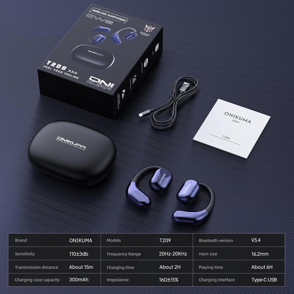Open-Ear Design for Comfort: Enjoy all-day wear with an airy, pressure-free fit. Perfect for running, cycling, commuting, and long gaming sessions. Bluetooth 5.4 & Low Latency: Equipped with AB5656C chip and Bluetooth 5.4 for fast, stable, and low-lag connections—ideal for gaming and video streaming. Secure Fit with Ear Hooks: Ergonomic over-ear hooks keep your earbuds in place during workouts, jogging, or intense activity. Powerful 16mm Dynamic Drivers: Feel the bass and hear every detail with large drivers and AAC/SBC audio decoding. Rechargeable Case with Type-C: Get 6 hours of playtime per charge, and 18+ hours total with the portable 300mAh charging case. Fully recharges in just 2 hours via USB-C.