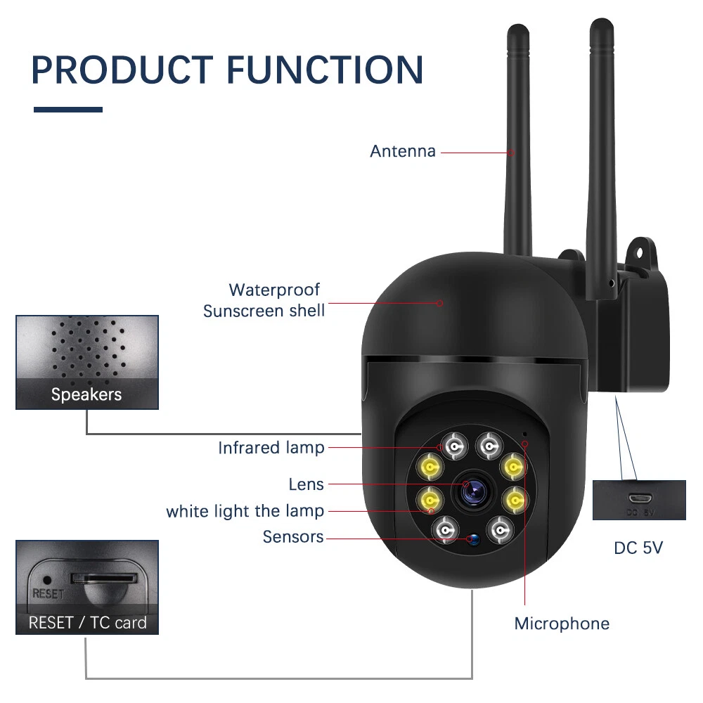 Wireless Security Camera System Outdoor Home 5G Wifi Night Vision Cam 1080P HD Description Description : 1.1080P Home Security Camera: 2.LED quantity:4pcs white LED + 4pcs Infrared LED 3.Shell material: ABS 4.Image Sensor: 2MP HD CMOS Sensor 5.Video format: HD 1920*1080 6.Video Coding: H.264 7.Video frame rate: 1-25 frames 8.Recording mode: manual recording, alarm recording 9.Video playback method: mobile client + computer client 10.Audio output: Built-in 8ohm 2W speaker 11.Built-in lens: 3.6MM 12.Infrared light night vision effect: through the photosensitive resistance sensor switch, LED night vision 10 meters, (IR-CUT automatically switch) 13.Minimum illumination: 0.1Lux / F1.2 14.PTZ control: horizontal rotation 355degree, vertical 90degree 15.Local storage: Support TF card(Not included), support 24-hour video recording or alarm 16.Wifi: 5DB built-in antenna 17.Image Rotation: Mirror / Invert 18.Motion Detection: Support 19.Alarm Action: Ring Alarm / Mobile Client Push 20.Network Interface : Wi-Fi/802.11/b/g(2.4GHZ)、5GHZ Specification : 1.Worry about home security again with this WiFi Home Camera. he Connects to your phone via the smartphone application available on Android and IOS, so you can keep tabs on your home wherever you are. 2.Audio system, you can always know what's going on in your house with your Children and pets. 3.Sensor to detect the amount of light in the room, so you can always see Characteristics : 1.5GHZ/2.4GHZ WIFI connection 2.Connect Multiple Camera Devices 3.Mobile application so that you can access your camera wherever you are (Android and iOS, PC / web browser) 4.Pan / tilt 355 °-90° panoramic view 5.Built-in microphone and speaker (2-way audio communication enabled) 6.Motion sensor 7.Alarm push notifications 8.Real-time visuals through the application 9. Colorful night vision Package Included : 1 x IP Camera 1 X Screw 1 X Manual Payment Shipping Returns Contact Us 1. Only accept Paypal 2. All major credit cards are accepted through our secure payment processor PayPal. 3. We ship to your Paypal address. Please make sure your Paypal address is correct before you pay. Please make sure your eBay shipping address is correct for your receiving. We will try our best to solve any dispute and try our best to satisfy you. If you are not satisfied with our product, please contact first . We will gladly accept any return and give a full refund (minus shipping costs) on any item. The item must be returned to us in original condition with the health and hygiene seal intact. If you have not got it within the shipping time, please no hesitate to contact us. We will check it for you with the post office and customs. Because sometimes it will be delayed for traffic or flight jams. Please do not open dispute to us. We will take responsibility to resend or refund for any lost item. Please contact us in time if any enquriy under any circumstances. We greatly appreciate your positive feedback and we'll do the same to you. We care about our valued customers, and will always try our best to help you, if you have any problems. Working time: GMT+8 / 9:00-18:30 in normal we will reply you in one working day.