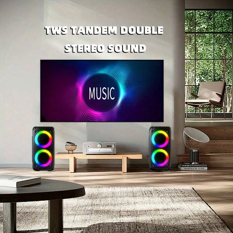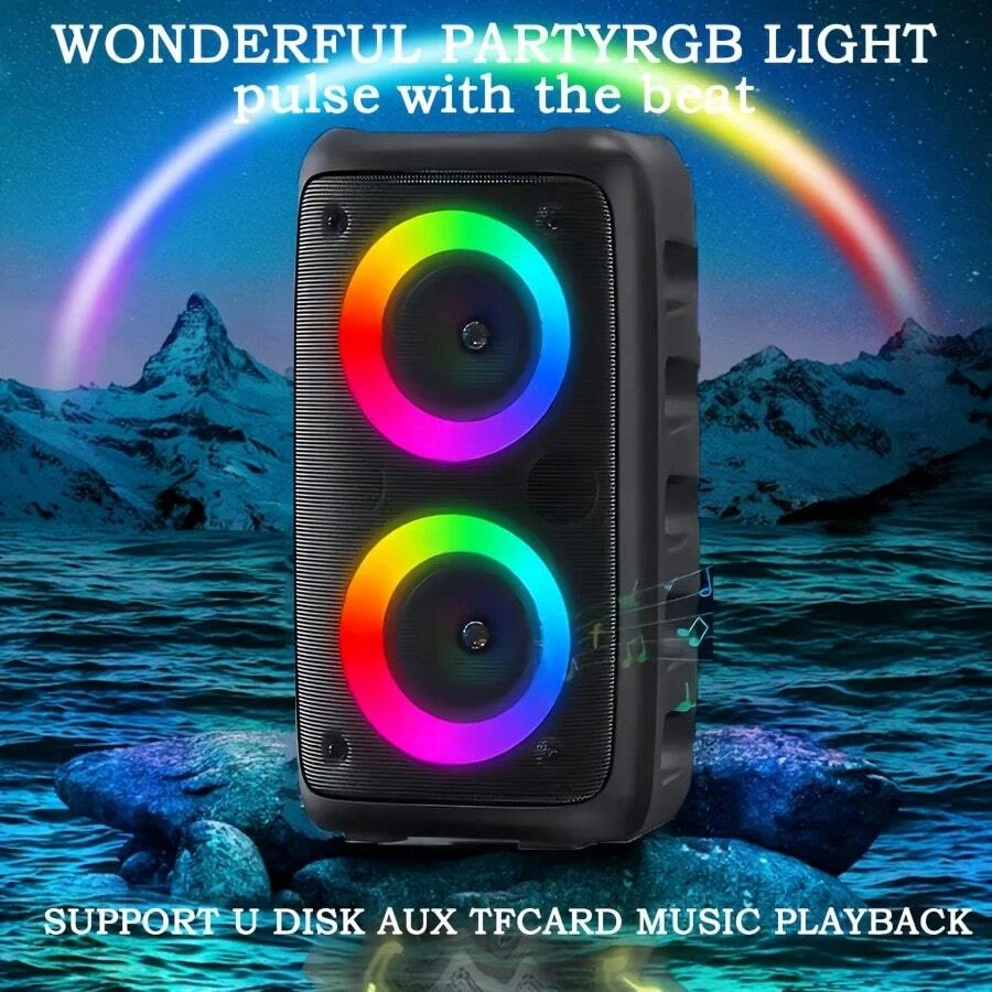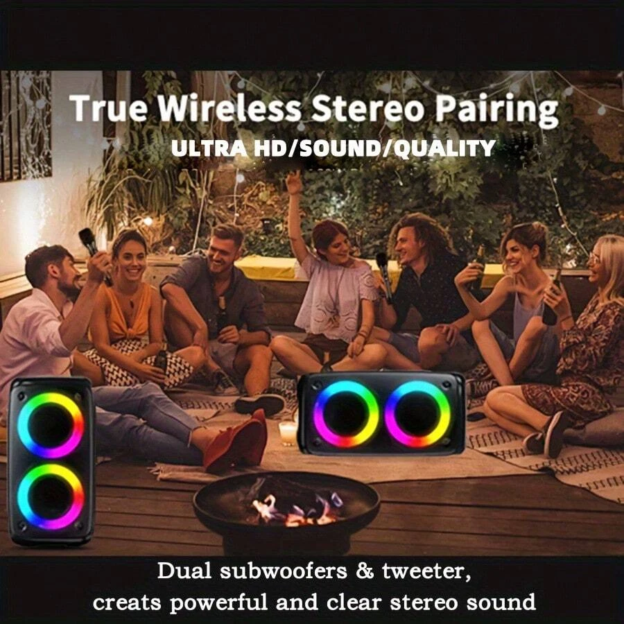 Wireless speaker with microphone, large speaker, stereo speaker, subwoofer, outdoor wireless speaker, party disco light, TWS, TF, AUX, MIC