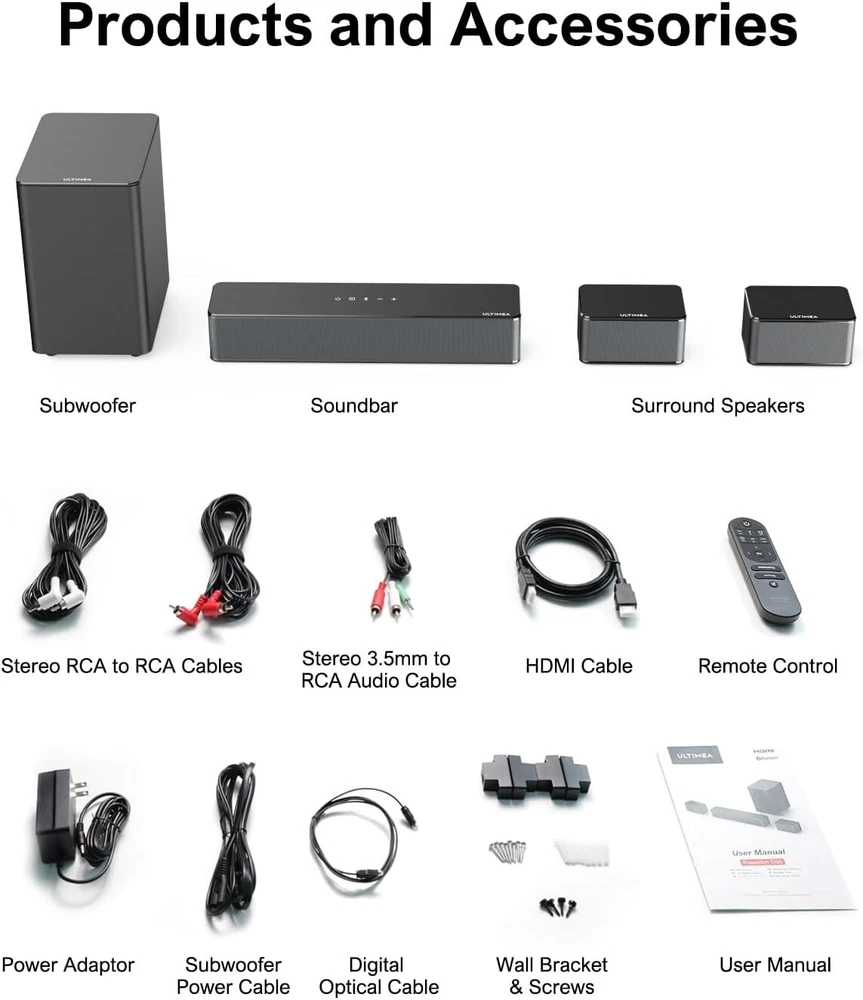Wireless Subwoofer and Adjustable Speakers – Ultimate 5.1 Soundbar Experience ‹ › ‹ › ‹ › ‹ › ‹ › ‹ › ‹ › ‹ › ‹ › ‹ › Wireless Subwoofer and Adjustable Speakers – Ultimate 5.1 Soundbar Experience Step into a world of audio excellence with our Wireless Subwoofer and Adjustable Speakers, designed to transform your home entertainment into a cinematic experience like never before. Key Features: Immersive Surround Sound: Experience sound that envelops you with SurroundX technology, converting 2.0 PCM to a captivating 5.1 surround signal, ensuring every sound moves around you. Enhanced Clarity: Featuring aerospace-grade magnets, the speakers deliver crisp and distinct surround sound that will elevate your viewing pleasure. Adjustable Rear Speakers: Enjoy dynamic audio with two wired rear speakers and one powerful subwoofer, with volume customizable across three levels via remote control. Customized Audio Experience: Personalize your sound environment with adjustable surround and bass levels. Choose between three unique audio settings tailored for movies, dialogue, or music with a simple press of the remote. Deep, Room-Filling Bass: Experience thunderous bass powered by Ultimate BASSMX Technology, with adjustable volume for subwoofer bass levels to match your mood. Effortless Setup & Sophisticated Design: Achieve seamless connectivity through various wired and wireless options. With clear instructions and a sleek design, this soundbar is perfect for your TV stand, cabinet, or under your television. Why Choose Our Surround Sound System? Indulge in the ultimate audio experience with our state-of-the-art Wireless Subwoofer and Adjustable Speakers. Perfect for movie nights, gaming sessions, and listening to your favorite albums, it brings real-life sound into your home with effortless sophistication. Utilize adjustable features to suit your precise audio preferences and enjoy a rich and immersive sound environment. Experience cinematic greatness within your living space by investing in your own home theater system. Elevate your audio journey—order your Ultimate 5.1 Soundbar now! Shipping Free & Fast Shipping - We offer free shipping to most of the USA with a normal delivery time of 3-7 days. However, due to the current situation, additional delivery time (up to 3 weeks) may be required for some items. Alternative Carriers - We may use alternative carriers (e.g. USPS, FedEx, UPS, etc.) to ensure your package arrives safely and on time. Due to the use of multiple carriers, we are unable to provide a tracking number automatically. Handling Time - Orders are processed and shipped within 1-2 business days of receiving cleared payment. Shipping Restrictions - Shipping to Alaska, Hawaii, Puerto Rico, Guam, and other US territories may incur shipping charges or delivery restrictions. Please contact us before ordering, or your order can be refunded/cancelled. State Restrictions - There may be restrictions based on your state of purchase. For example, certain items may not be shipped to California due to state regulations. Contact for Tracking Updates - If you require tracking updates or have any concerns about the delivery of your order, please feel free to contact us, and we will be happy to assist you. Return Please see our eBay Return Policy. Thank you. Payment We accept all major credit cards, PayPal, and Apple Pay for your convenience. Your payment information is secure and encrypted to ensure a safe and seamless transaction. Please complete your payment within 3 days of purchase to avoid any delays in shipping. Feedback Your feedback is extremely important to us. We strive to provide the best products and customer service possible. If you are satisfied with your purchase, please take a moment to leave us a positive review. If you have any concerns or issues with your order, please contact us before leaving negative feedback. We are committed to resolving any problems and ensuring your satisfaction. Contact Us If you have any questions or concerns, please feel free to reach out to our customer support team. You can contact us through the eBay messaging system. We are available Monday to Friday, 9:00 am to 5:00 pm EST, and we will do our best to respond to your inquiry within 24 hours. Thank you for supporting our small family business! UPC: 642380742998 Unit Quantity: 1.0 count Item Height: Sound Bar System Item Length: Sound Bar System Item Width: Sound Bar System Connectivity: Bluetooth,HDMI,Auxiliary,Optical Features: Bass Boost,Surround Sound Rear Speakers,Deep Bass with BASSMX Technology,Easy to Set Up,Decent Design Audio Inputs: 3.5 mm Jack,Digital Optical TOSLINK,HDMI,Stereo RCA Smart Home Compatibility: Not Set Surround Sound Formats: PCM 5.1 Compatible Brand: Not Set Compatible Model: Universal Brand: Unbranded Type: Soundbar Model: Sound Bar System Shape: Rectangular System Configuration: 5.1 Channel Color: Black RMS Power: 320 W Driver Size: 5.25 in Impedance: 4 Ohms MPN: Not Set Unit Type: Unit Material: Metal Year Manufactured: Not Set Country/Region of Manufacture: Not Set Plug Regional Fitment: Not Set Manufacturer Warranty: Not Set Battery Capacity: Not Set Item Weight: 11.7 lbs