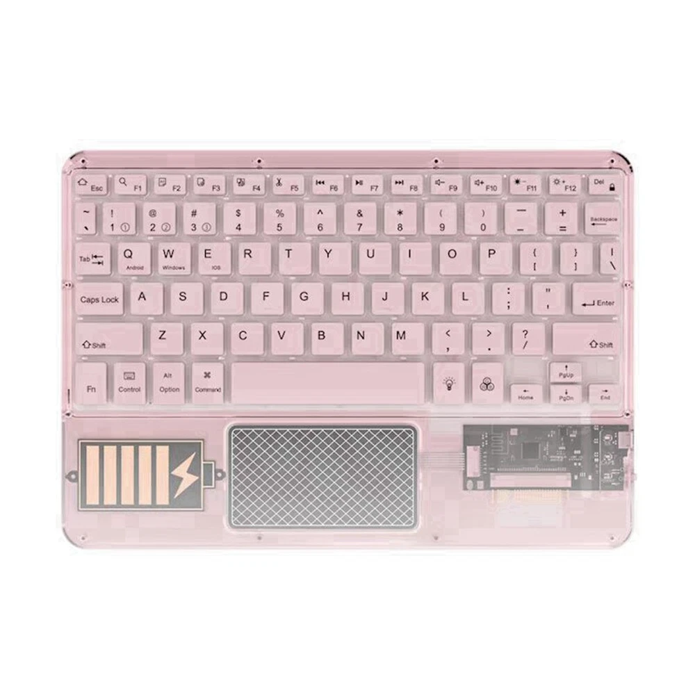 Wireless Touch Keyboard Backlit Keyboard RGB Keypad Transparent Crystal1892 1. , Different Texture, Acrylic Material, Long-Lasting Bright Personality Office Desktop 2. Three Modes And Three Devices, One Key To Cut In Seconds, Change Can Connect Three Devices At The Same Time, One Key Switch 3. Multi-System Compatible, Android/Ios/Win, 5.2 Bluetooth Connection, Can Switch The Connection System At Any Time 4. Mute Buttons, Scissor Foot Structure, Comfortable Feeling, Bring Smooth Input Experience 5. Built-In Battery, 20 Days Worry-Free Battery Life, Built-In Large-Capacity Battery, Type-C Charging Interface Charging For 2 Hours, Battery Life For 20 Days Applicable System: Android/IOS/ Charging Interface: Type-C Battery Capacity: 500mah Battery Life: 20 Days Of Use / 60 Days Of Standby Bluetooth Version: 5.2 Connection Distance: 10m Colour:White/Pink/Green/Blue/Black Material:Acrylic Size: 24.1 x 16.6 x 0.06cm Package Contents: 1 x Keyboard Only the above package content, other products are not included. Note: Light reflection and different displays may cause the color of the item in the picture a little different from the real thing. The measurement allowed error is +/- 1-3cm.