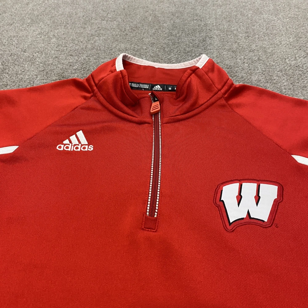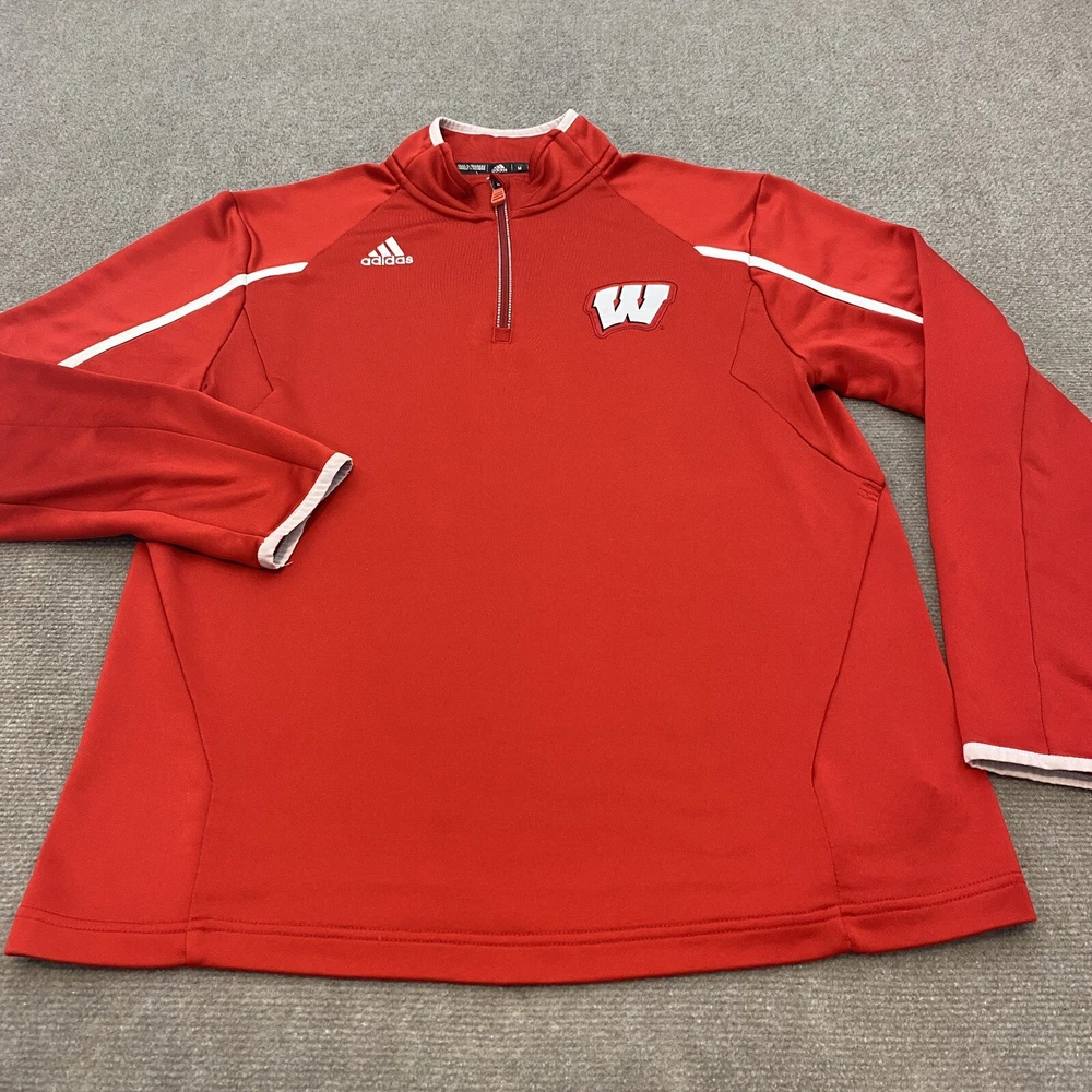 Wisconsin Badgers adidas Sweatshirt Men Medium Red 1/4 Zip Pullover Logo College