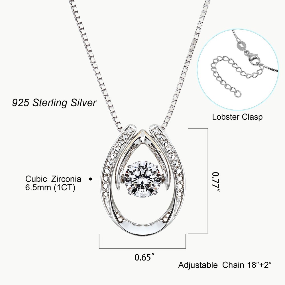 【Shining with Your Every Step】This elegant necklace offers two timeless styles in one, transforming from a graceful horseshoe to a charming wishbone. Its 1-carat CZ stone shimmers with every movement, adding a touch of sparkle that celebrates the beauty of life’s meaningful moments, perfect for every occasion. 【Dancing Diamond Necklace】This necklace features a brilliant round-cut cubic zirconia, expertly polished for maximum shine. Its patented Japanese design allows the stone to move continuously, sparkling like a dancing diamond. Just as the gem dances with every heartbeat, reflecting the love, joy, and cherished moments that make your life beautiful. 【100% 925 Sterling Silver, Safe and Comfortable】Crafted from genuine 925 sterling silver, this necklace offers lasting brilliance and a hypoallergenic finish, gentle on sensitive skin. The adjustable silver chain (18 to 20 inches) features a sturdy lobster clasp, making it a versatile and comfortable choice for you on any occasion. 【Perfect for Gifting】 Whether you’re treating yourself or looking to surprise a loved one, this necklace is a perfect choice for expressing heartfelt affection. It comes beautifully presented in an elegant box, ready for gifting on any occasion. Ideal for birthday, anniversary, Christmas gift. it’s a thoughtful way to show love to a girlfriend, wife, mother, or daughter. Celebrate the special moments and relationships in your life with a gift that speaks from the heart. 【30 DAY GUARANTEE】is committed to providing top-quality jewelry and service. We hope to provide you a nice shopping experience, enjoy a 30-day Money Back Guarantee and reach out to us anytime with questions.