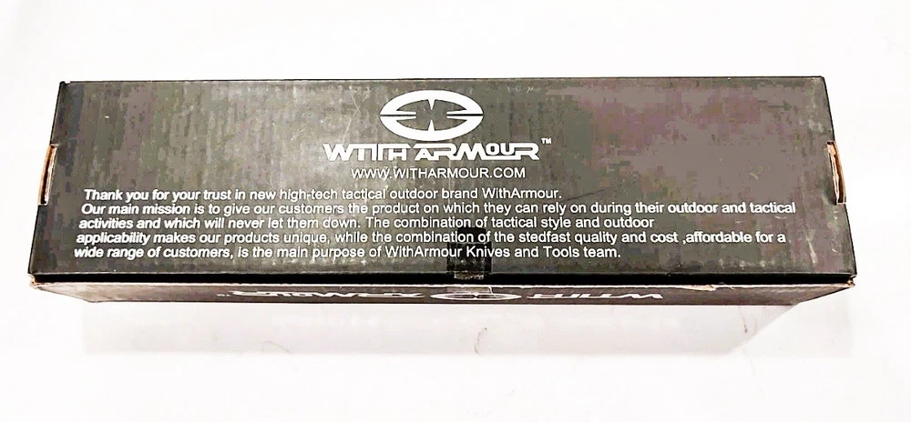 Brand New WithArmour Tactical Fixed Blade Knife – WA-057BK Model This high-performance fixed blade knife from WithArmour is built for serious outdoor use. Featuring a rugged 440C stainless steel blade and a durable black ergonomic handle, this knife is ideal for camping, survival, tactical missions, or everyday carry. Key Features: • Model: WA-057BK • Blade Material: 440C Stainless Steel • Handle Material: Ergonomic Textured Black Grip • Blade Style: Spear Point with Stonewash Finish • Full Tang Design for durability and strength • Sheath Included: Black molded sheath with multiple carry options • Overall Length: Approx. 9 inches (blade approx. 4.5”) • Condition: Brand new in box with original packaging Included: • WithArmour WA-057BK Knife • Sheath • Original branded box and paperwork This knife is built to last with tactical precision and comfort in mind. Whether you’re heading into the wild or looking for a reliable utility knife, the WA-057BK delivers.