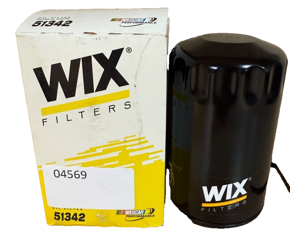 This is a Wix oil filter model 51342, designed in a spin-on style with a metal construction. It includes a gasket made of rubber for easy installation on the front of a vehicle. The filter is brand new and unused, denoted as NOS (New Old Stock), and is manufactured in the United States. This product does not come with a manufacturer warranty.