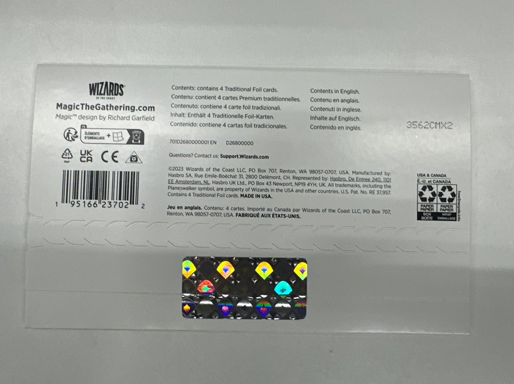The Wizards of the Coast Secret Lair Drop Series More Borderless Planeswalkers - 4 is a collectible card game product featuring exclusive, borderless planeswalkers from the Magic: The Gathering set. This box contains 4 standard-sized cards made of durable card stock, perfect for players aged 13 and above. The exclusive and borderless features add to the appeal of this special edition release by Wizards of the Coast.