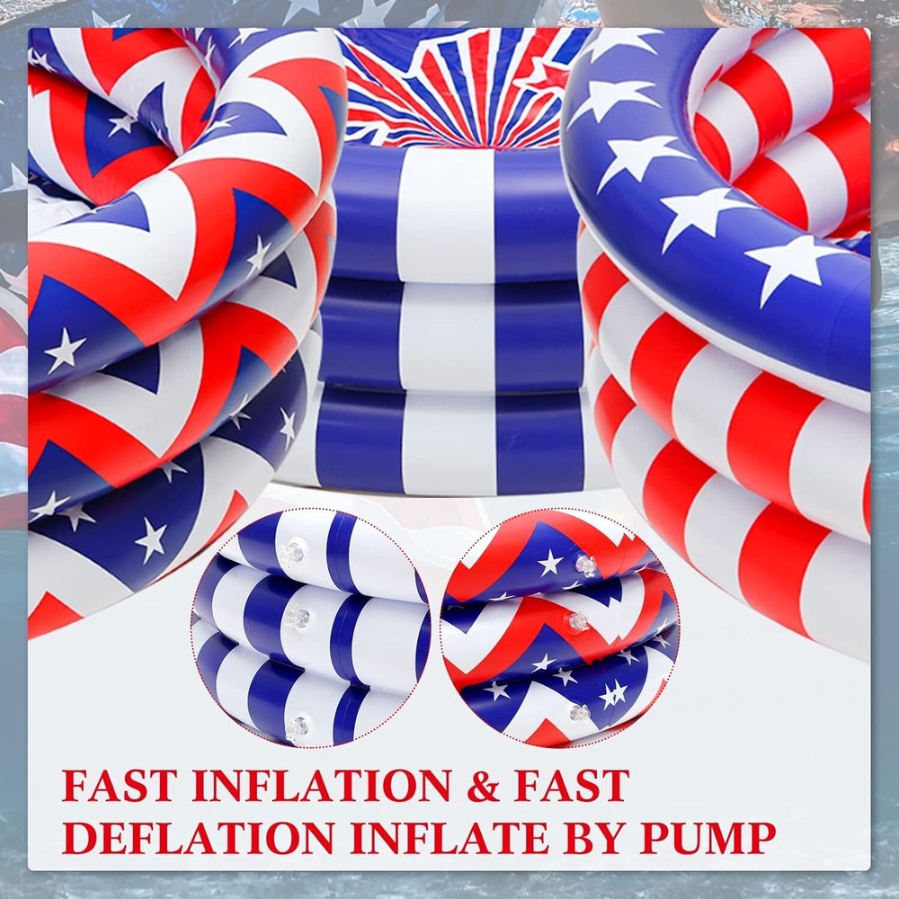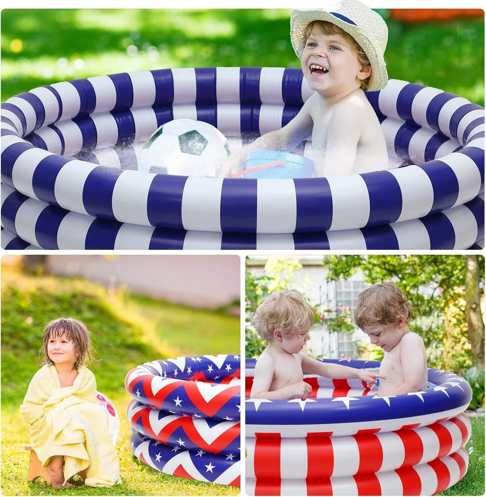 Woanger 3 Pcs Inflatable Kiddie Pools 45 x 10'' Kids Heavy Duty Inflatable Pool, Red Blue White American Flag Swimming Pool 3 Rings Blow up Water Pool Pit for Baby Toddler Summer Indoor Outdoor Party Item Description About this item Independence Day Kiddie Pool: the kiddie pool is designed with classic patriotic elements, such as stars, stripes, and colors like red, white and blue, lovely and eye catching, and can attract your friend and guests' attention Appropriate Size to Apply: the size of the baby swimming pool is about 45 x 10 inches, the size is suitable for children to apply, and Mom or Dad can company their children at the same time, please check the size to avoid misunderstanding, and it is not a life saving device and requires a guardian Stand for Long Term Usage: the small swimming pool is mainly made of quality vinyl, safe and reliable, long lasting and sturdy, the package also comes with repair patches for holes or leaks caused by accidental punctures or tears, providing you with a pleasant experience Bring You a Cool Summer: the inflatable pools will bring more fun to children in summer time, and it's a nice addition for summer backyard play; Please be careful to check under and around the pool for any pointed objects or debris that could cause stab wounds Easy to Apply: the mini pool is simple to use; It can be quickly inflated, and placed at the place you like; After use, it can be easily disassembled and stored without taking up too much space › See more product details Payment We accept payment only through PAYPAL Shipping We ship products worldwide through standard express courier service, it will reach within 7 to 10 days to abroad buyers, we ship the product after recieved clear payment and give full information about shipment to the buyer Return We accept product return within 7 to 21 days from delivery date but product should be in original position and not in damaged condition,the return shipping charges will be buyer responsibility