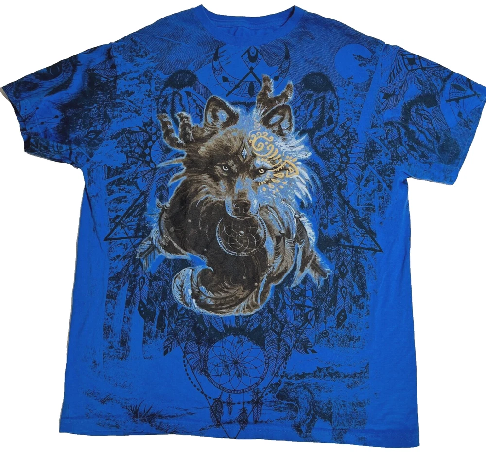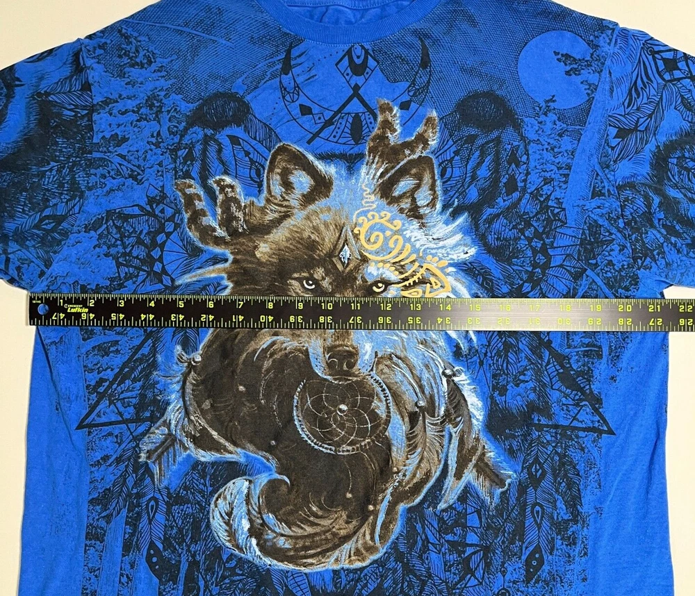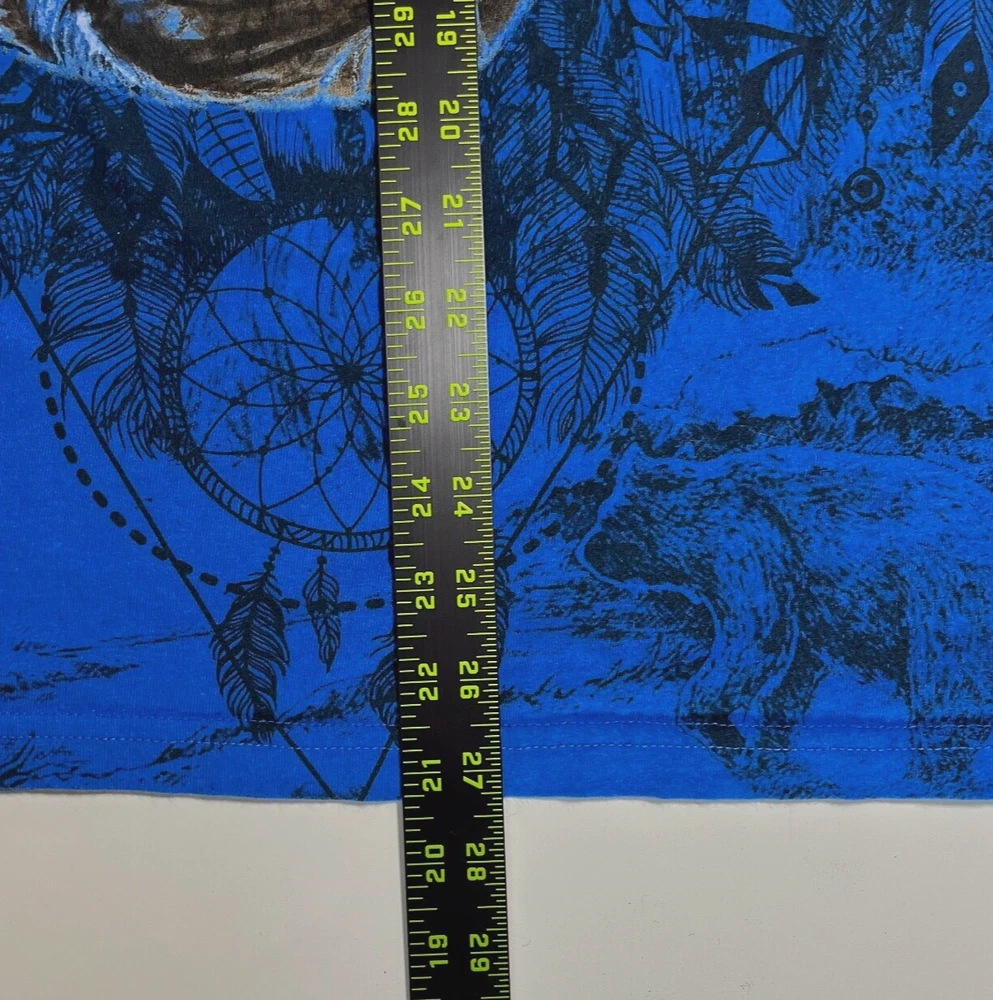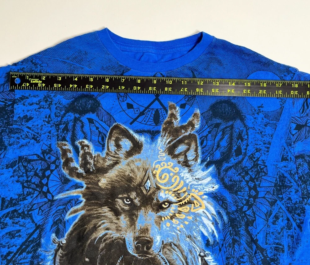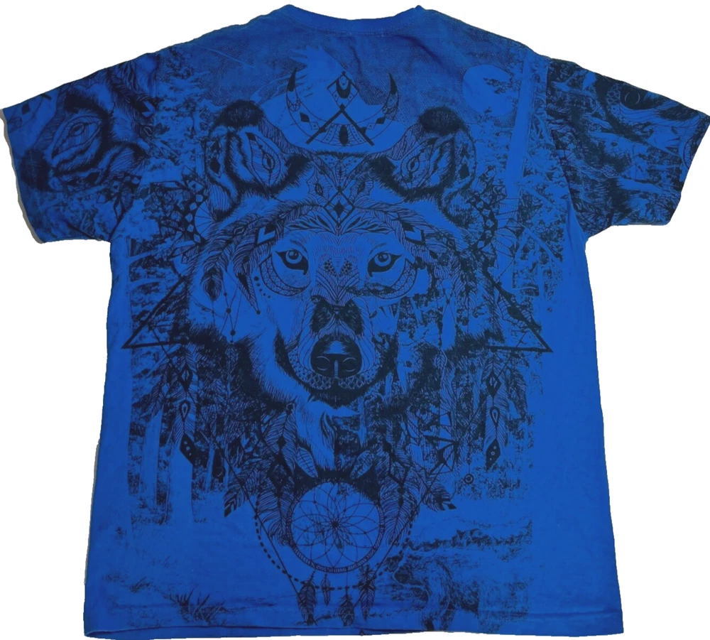 Wolf Tribal T Shirt Blue Crewneck Nature Dream AOP Short Sleeve Shirt Mens XL Please refer to photos for the most accurate measurements, description, and estimation of the item's condition. We’re happy to answer any questions or provide additional photos before purchase if requested! All items are sold as is and we try our very best to note any issues with condition in both our description and close up photos. Please remember that colors can look different across different devices and monitors. Condition: Please see photos for measurements. Any further measurements needed? Just ask! EUC Pre-Owned: shows minimal to no signs of wear, as expected with typical well cared for use such as slight fading of colors with age. Please make sure to double check measurements for the best representation of fit, as brands can vary in sizing. Comes without sales tags, dust bag, or brand box. Will it Fit Check? Please reference the listed measurements (in photos and/or text) before purchasing. Fit check tip: Grab your favorite similar style item at home, lay the garment on a flat surface, and measure shoulder to shoulder, the width (armpit to armpit), and length (top to bottom). Then compare your measurements to those in our listing! If you need any further measurements not noted in the listing, please feel free to request, we will get back to you asap. FAST SHIPPING! Orders are usually shipped within 24 hours M-F Friday orders will ship Monday morning at the latest, unless there is a postal holiday. Feel free to send us a message before purchase if you?d like a certain delivery service or combined shipping offers. Still got Questions? Send us a message! We do our best to accurately and thoroughly represent each item in images and condition description, but, if there's any further information you?d like before purchasing or have a shipping request, please don't hesitate to ask and we'll get back to you asap. RETURN POLICY: Please reach out prior to purchase with any questions or shipping requests. Returns are accepted within 30 days, buyer pays return shipping. Refund issued upon receipt of item in original condition. Full refund (minus original shipping) will be issued once we receive the item assuming it is in the exact same condition as it was shipped.(Clean, unaltered, tags still attached if item was new with tags, etc.) We request that you select "Item does not fit" when returning an item that does not fit. Thank you for shopping small and supporting our lil' Rodeo!