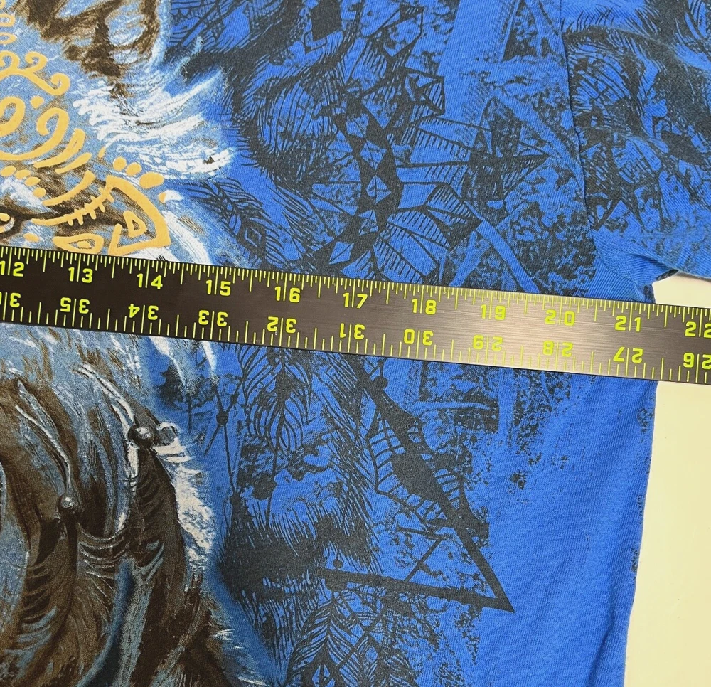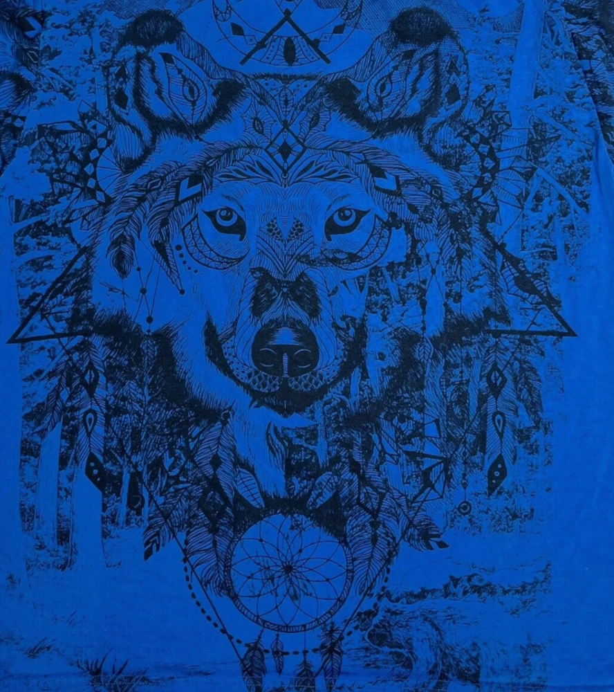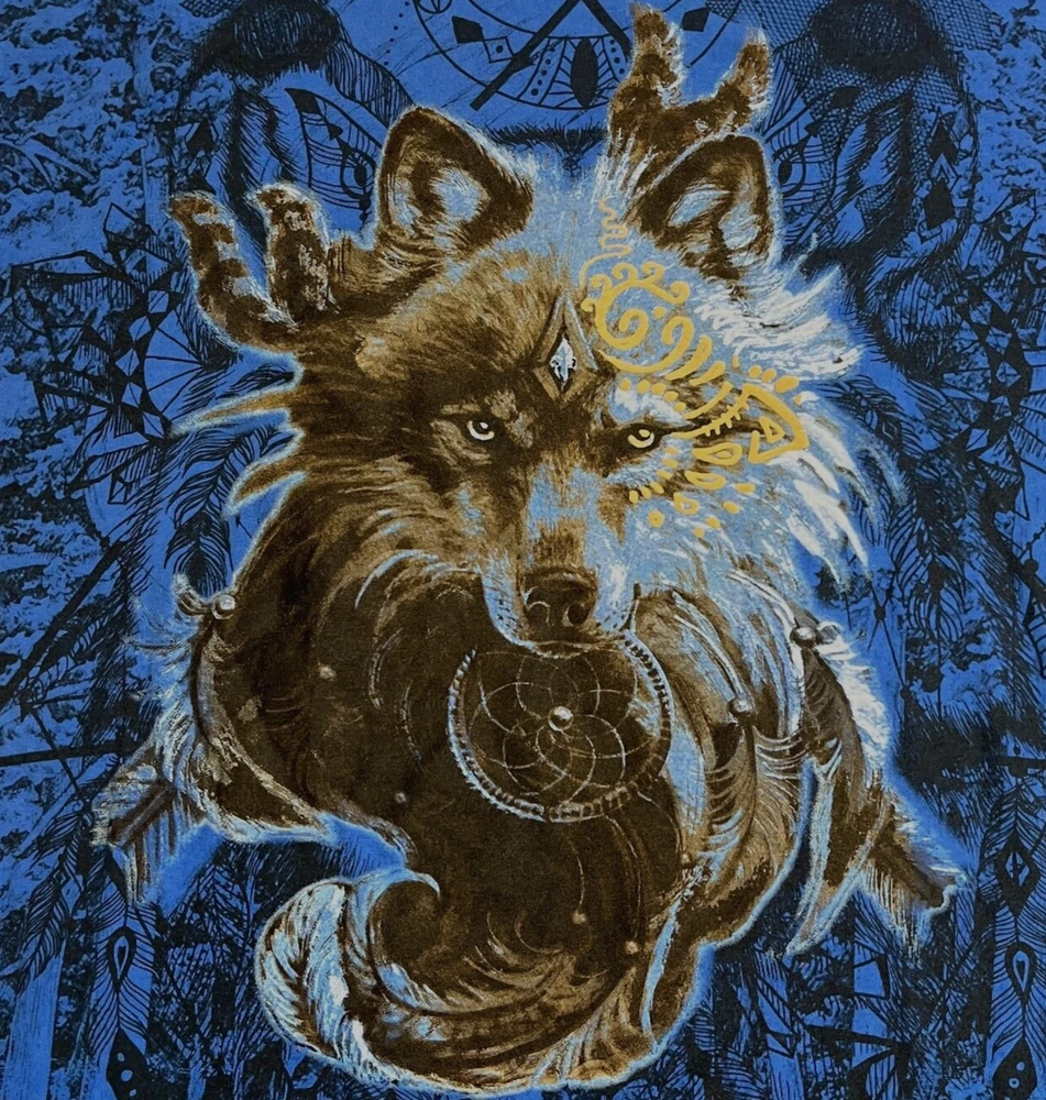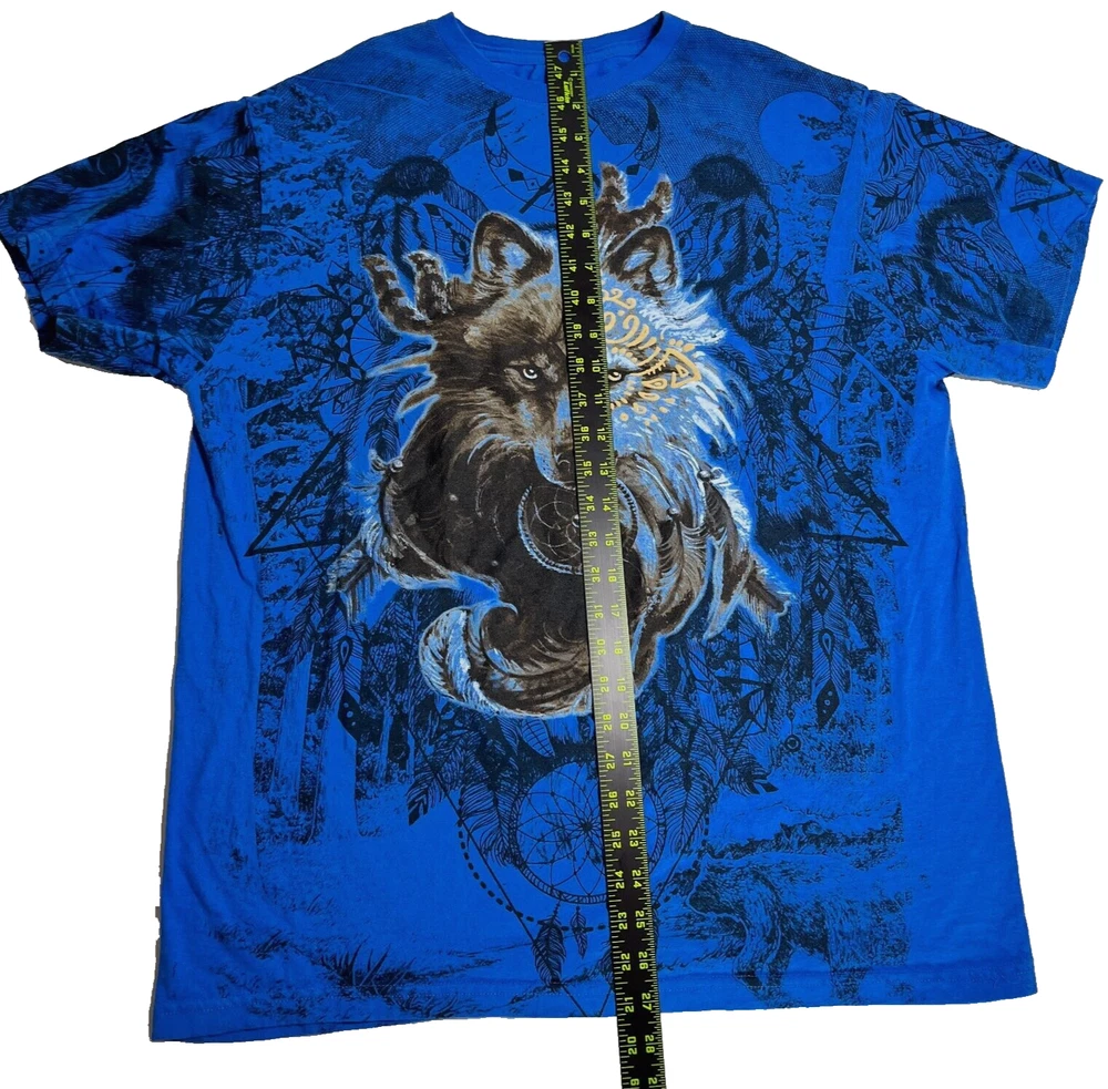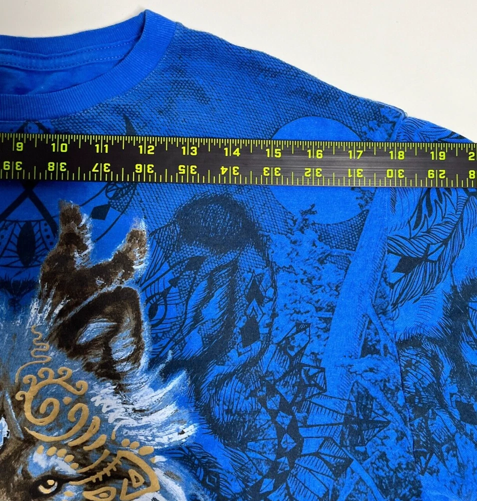 Wolf Tribal T Shirt Blue Crewneck Nature Dream AOP Short Sleeve Shirt Mens XL Please refer to photos for the most accurate measurements, description, and estimation of the item's condition. We’re happy to answer any questions or provide additional photos before purchase if requested! All items are sold as is and we try our very best to note any issues with condition in both our description and close up photos. Please remember that colors can look different across different devices and monitors. Condition: Please see photos for measurements. Any further measurements needed? Just ask! EUC Pre-Owned: shows minimal to no signs of wear, as expected with typical well cared for use such as slight fading of colors with age. Please make sure to double check measurements for the best representation of fit, as brands can vary in sizing. Comes without sales tags, dust bag, or brand box. Will it Fit Check? Please reference the listed measurements (in photos and/or text) before purchasing. Fit check tip: Grab your favorite similar style item at home, lay the garment on a flat surface, and measure shoulder to shoulder, the width (armpit to armpit), and length (top to bottom). Then compare your measurements to those in our listing! If you need any further measurements not noted in the listing, please feel free to request, we will get back to you asap. FAST SHIPPING! Orders are usually shipped within 24 hours M-F Friday orders will ship Monday morning at the latest, unless there is a postal holiday. Feel free to send us a message before purchase if you?d like a certain delivery service or combined shipping offers. Still got Questions? Send us a message! We do our best to accurately and thoroughly represent each item in images and condition description, but, if there's any further information you?d like before purchasing or have a shipping request, please don't hesitate to ask and we'll get back to you asap. RETURN POLICY: Please reach out prior to purchase with any questions or shipping requests. Returns are accepted within 30 days, buyer pays return shipping. Refund issued upon receipt of item in original condition. Full refund (minus original shipping) will be issued once we receive the item assuming it is in the exact same condition as it was shipped.(Clean, unaltered, tags still attached if item was new with tags, etc.) We request that you select "Item does not fit" when returning an item that does not fit. Thank you for shopping small and supporting our lil' Rodeo!