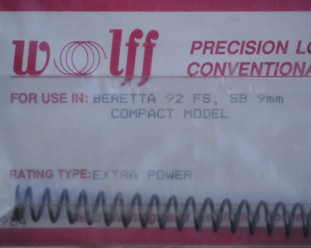 Wolff Recoil Spring Beretta 92 FS /SB, 9mm Compact Model 16lb Extra Power 40416. U.S. Shipping Only. Product shown is what you will receive.