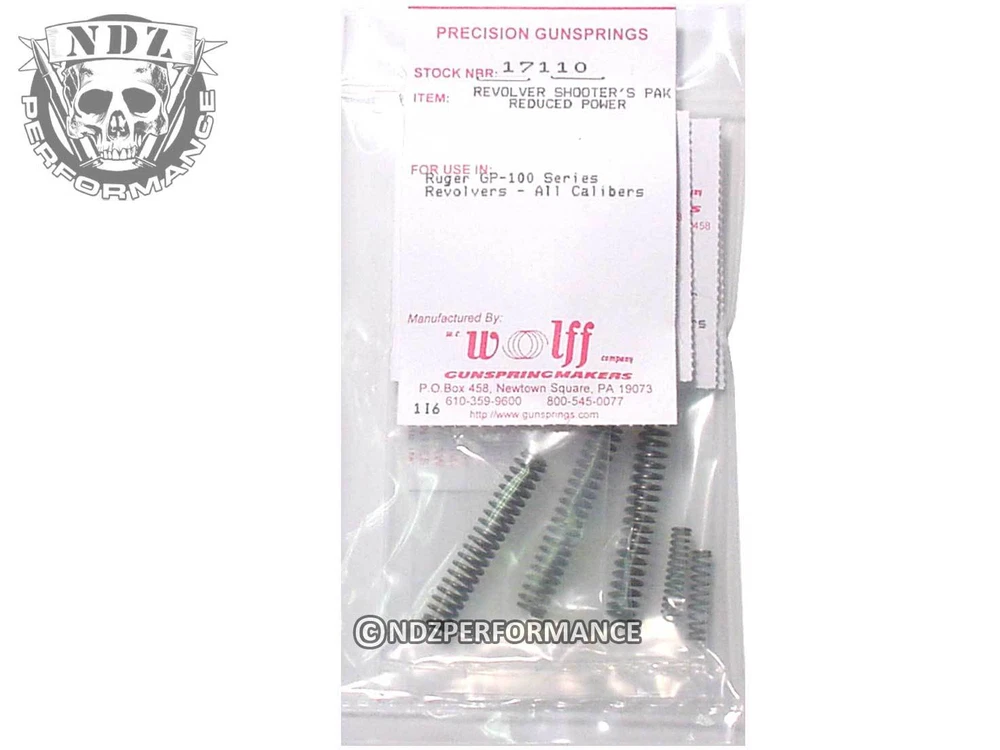 High Quality, Wolff Competition Reduced Power Complete Shooters Spring Kit For Ruger GP-100 in All Calibers ! Proudly Made in the USA We are a Reputable and Authorized Wolff Gun Springs Dealer, please checkout our other kits! This Lightweight Power Spring Kit includes: This Wolff Kit Contains in order from Left to Right: Qty 1 - 8 lb Reduced Power Trigger Return Spring Qty 1 - 10 lb Reduced Power Trigger Return Spring Qty 1 - 9 lb Reduced Power Hammer Spring Qty 1 - 10 lb Reduced Power Hammer Spring Qty 1 - 12 lb Reduced Power Hammer Spring Note: factory trigger return spring is 12 pounds. These reduced power Spring Kits will fit Ruger 100 series revolvers allowing optimum choice for lighter and smoother hammer actions which are essential for competition. This spring Kit will help greatly reduce the Hammer Weight and Trigger Pull Weight allowing you to Fine Tune your revolver. Hammer spring controls the "feel" of the trigger. Trigger return spring controls the force required to depress the trigger. Installation of a lighter spring makes it easier to pull the trigger. Kit installation requires disassembly and reassembly of the pistol, as always NDZ recommends that a qualified gunsmith perform the installation and adjustment or any parts or accessories. Please note this Spring is for competition use, not recommended for Duty use NO INTERNATIONAL SHIPPING ON THIS ITEM Visit our store for more items here !! Click here, View Our Feedback !!! BUY WITH CONFIDENCE, READ OUR FEEDBACK !! Thank You
