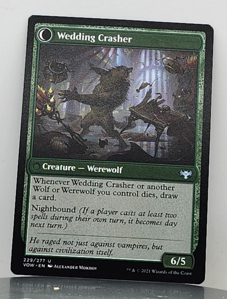 Whenever Wedding Crasher or another Wolf or Werewolf you control dies, draw a card.