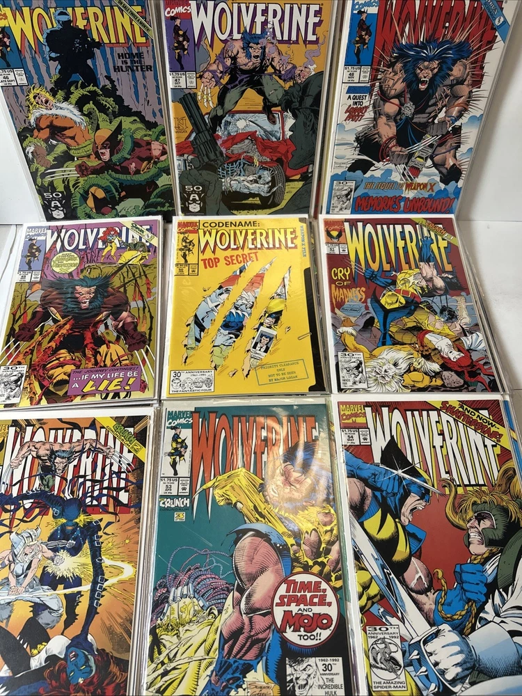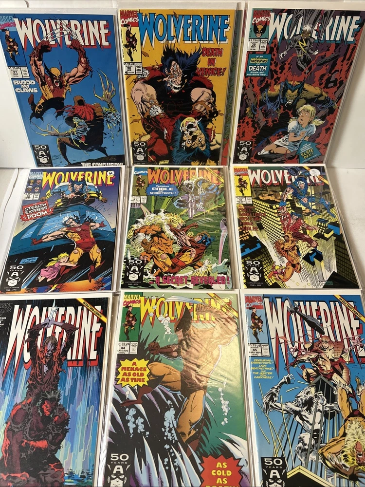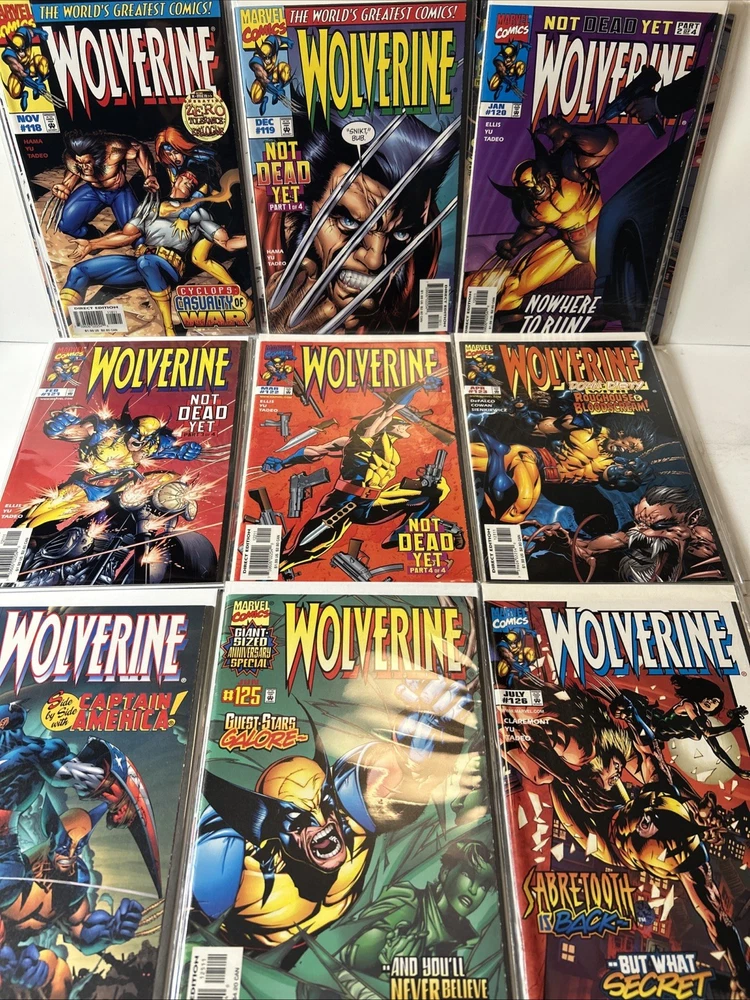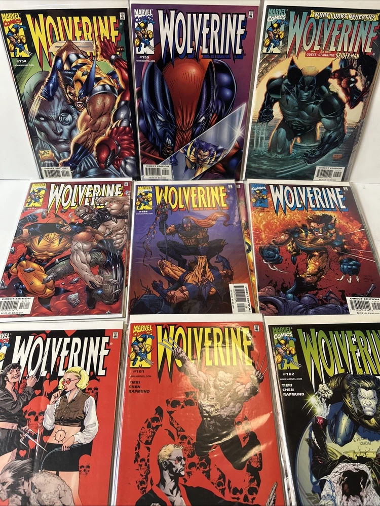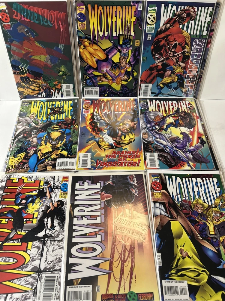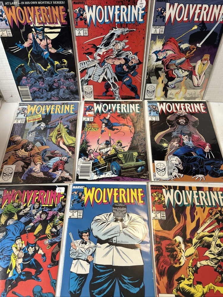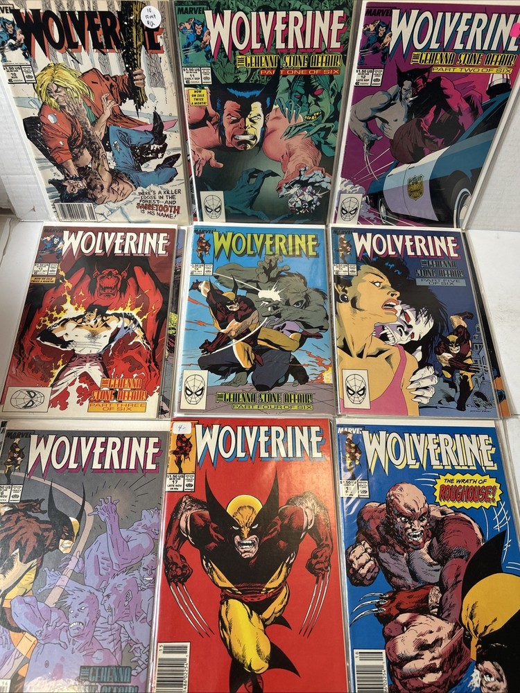 Wolverine Volume 2 Complete Run #1-189 With Most of the Annuals and all of the Keys #1-189 Complete Annual ‘96, ‘97, ‘99, ‘01 Mostly FN/VF-NM 1 (VG+) 83 (FR) The product is a complete run of Wolverine comic books from issue #1 to #189, including annuals and key issues. This set includes works by artists and writers such as John Buscema and Chris Claremont, featuring the character Wolverine from the X-Men series within the Marvel Comics universe. As a key issue set, this collection holds value for comic book enthusiasts and collectors looking to complete their Wolverine series run.