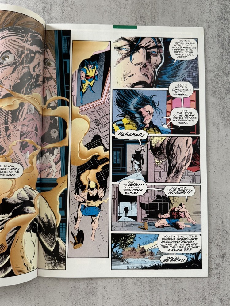 This listing is for Wolverine #90 (Feb 1995, Marvel Comics), one of the most iconic Wolverine vs. Sabretooth issues ever printed. Features the legendary all-out battle between Wolverine and Sabretooth. Known for its stunning fold-out wraparound cover artwork by Adam Kubert. Highly collectible key from the 90s X-Men era and a must-have for any Wolverine fan. Comic has been bagged and boarded. Please review photos carefully for condition — appears in VF/NM range with sharp edges, bright colors, and minimal spine wear. ---Item Specifics: Series: Wolverine (Vol. 2) Issue Number: #90 Publisher: Marvel Comics Publication Year: 1995 (February) Format: Single Issue Type: Comic Book Era: Modern Age (1992–Now) Character: Wolverine, Sabretooth, X-Men Cover Artist: Adam Kubert Story/Writer: Larry Hama Features: Key Issue, Fan-Favorite Wolverine vs. Sabretooth Battle, Fold-Out Wraparound Cover Condition: Very Fine/Near Mint (see photos) UPC: 759606022540 Shipping: Ships bagged & boarded for protection. USPS First Class or Priority Mail with tracking.