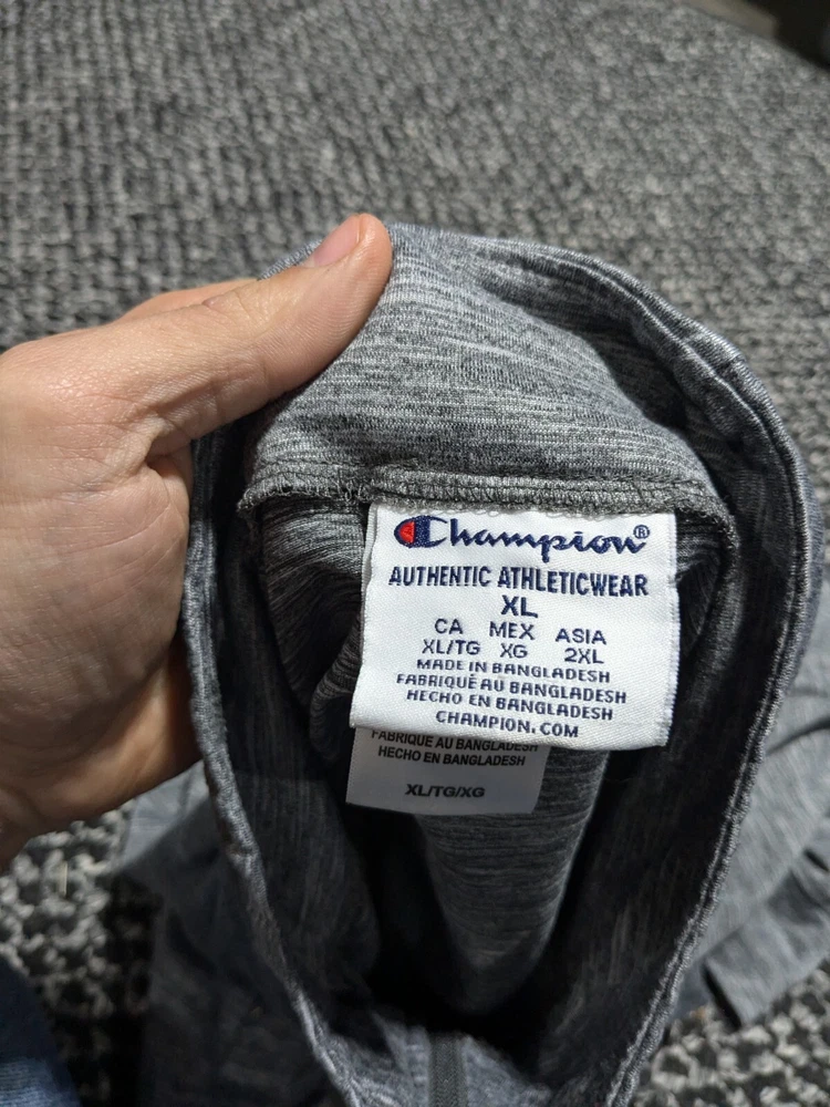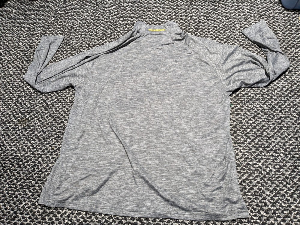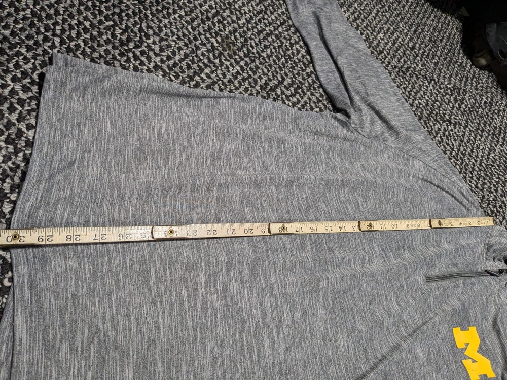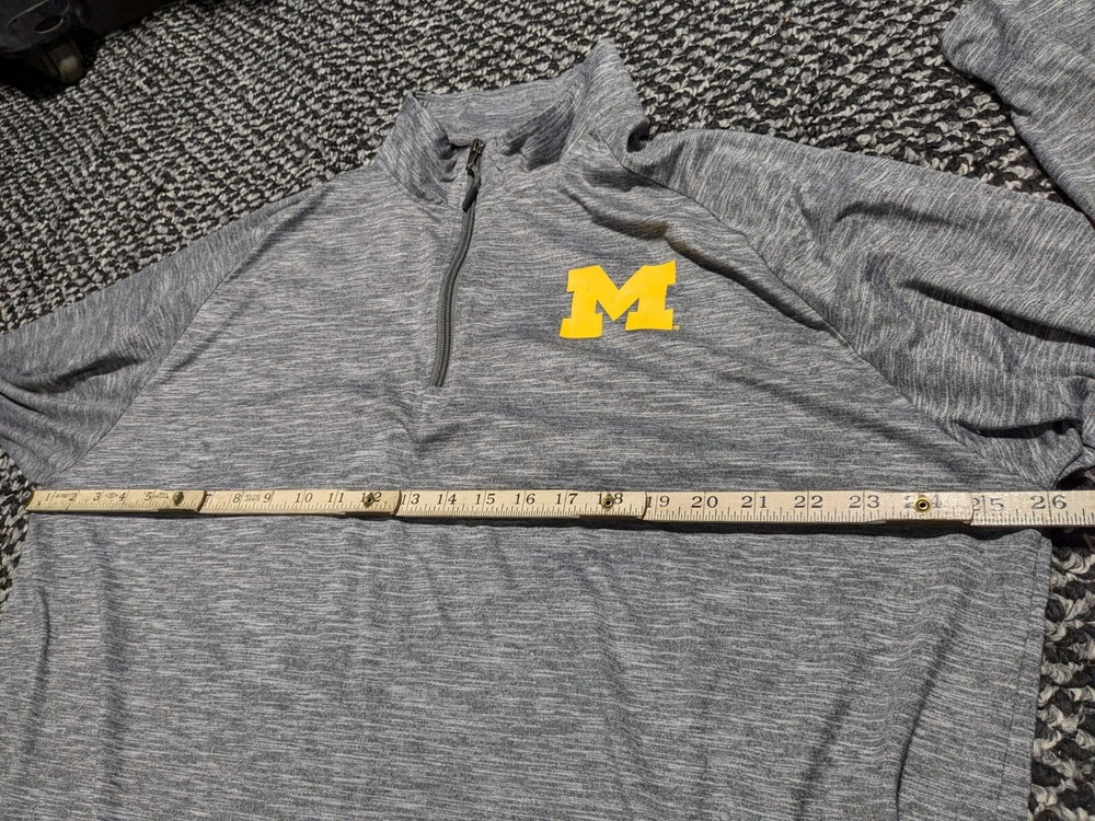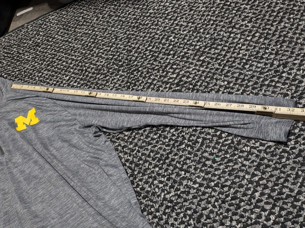 This is in great condition. Please ask if you have any questions. This is a Wolverine Champion men's long sleeve shirt in size XL featuring NCAA football and basketball logos. It is made of polyester and spandex, with a zip closure and gray color. The shirt is machine washable and suitable for activewear. The Champion brand shirt is designed for casual wear, with a theme of college sports. It is ideal for all seasons - winter, summer, fall, and spring.