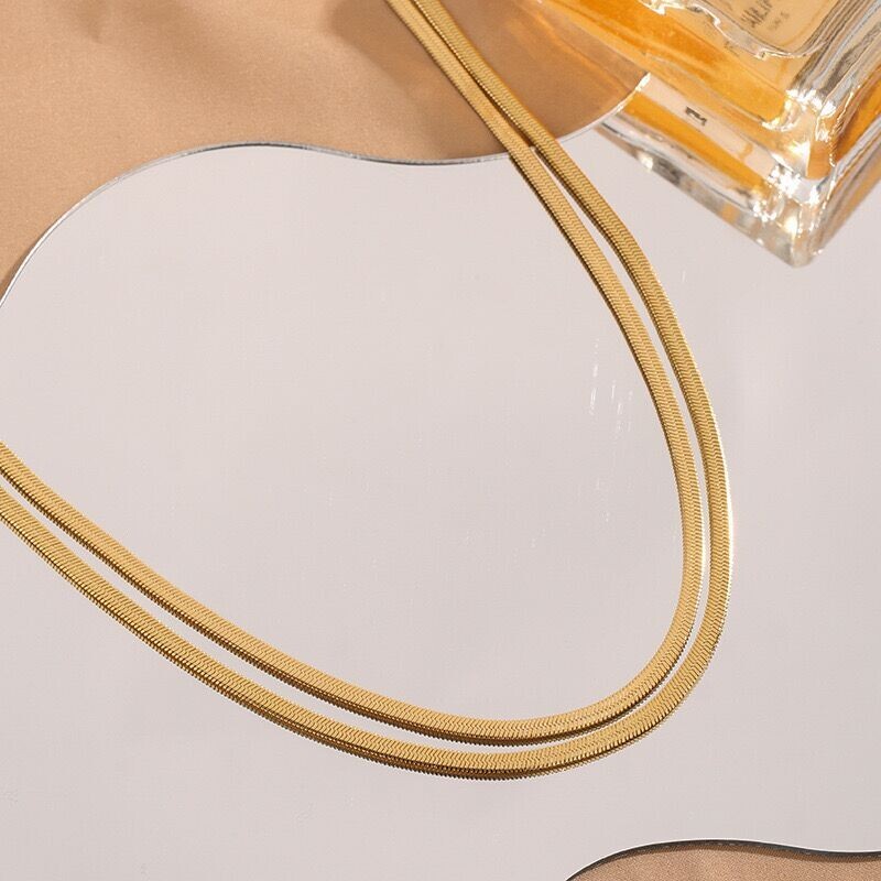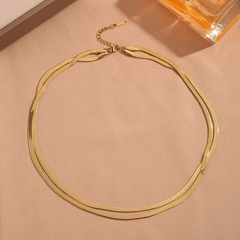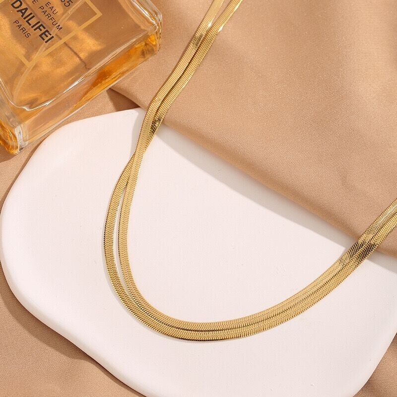Woman 18K Gold Plated Snake Herringbone Chain 2 Layers Chain Necklace